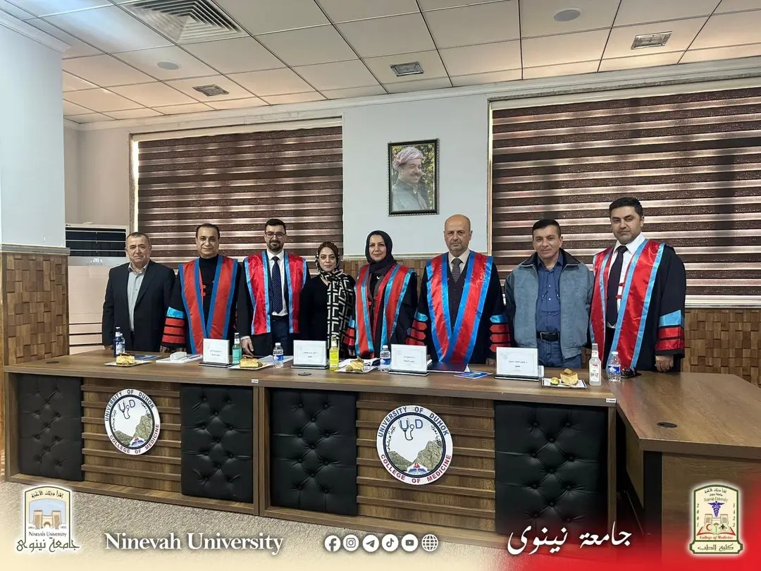 As part of the active academic presence of faculty members from the College of Medicine at the University of Ninevah, Assistant Professor Dr. Bassam Adwar Hanna, Head of the Department of Chemistry and Biochemistry and member of the Mosul Center of the Iraqi Board of Pathology / Clinical Chemistry, chaired the discussion committee of a...Read More