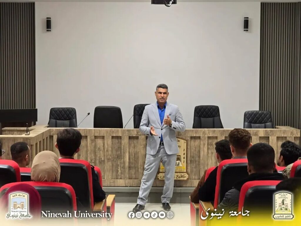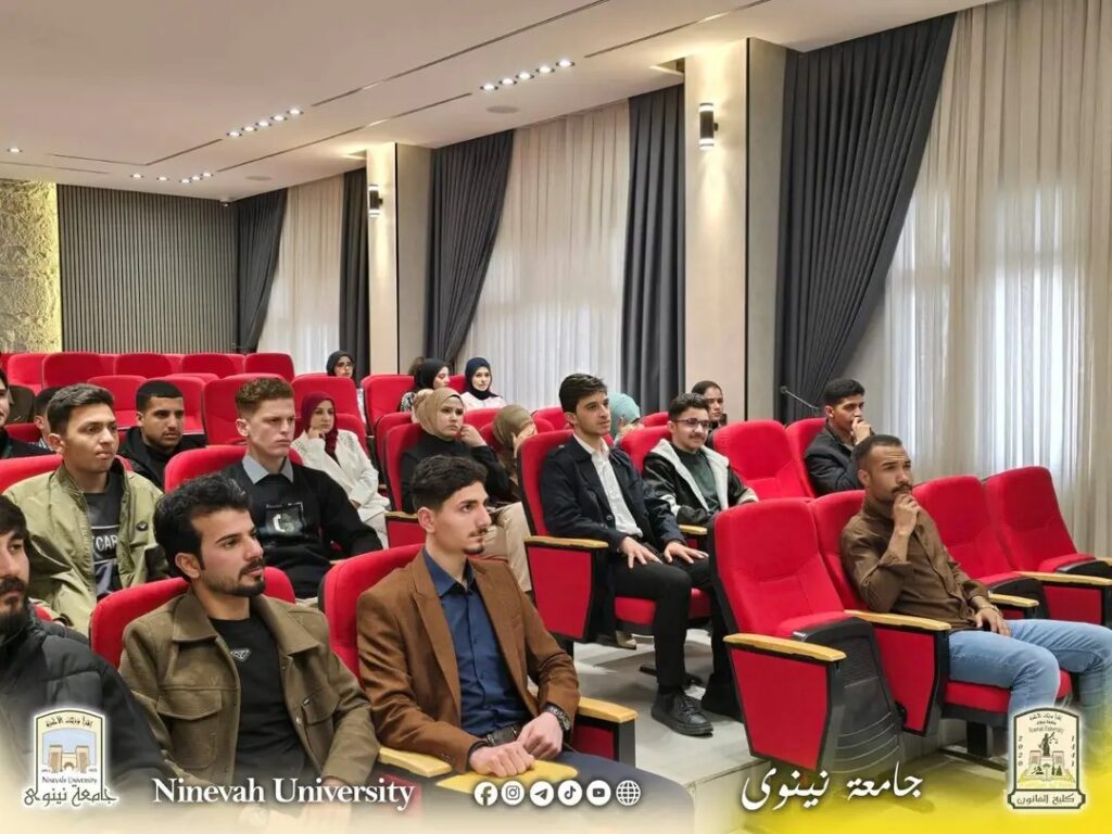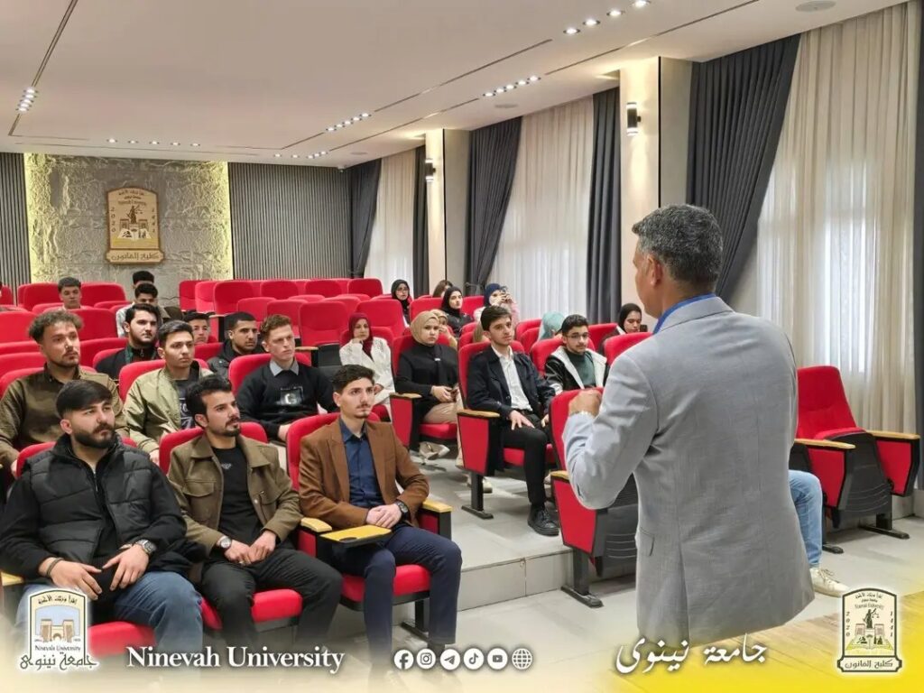 As part of the University of Nineveh’s efforts to develop students’ skills and enhance their professional readiness, the Technology Incubator Unit at the College of Law held an awareness lecture today, Sunday, March 29, 2026, entitled “College of Law Outcomes: The Successful Lawyer,” targeting the college’s students.