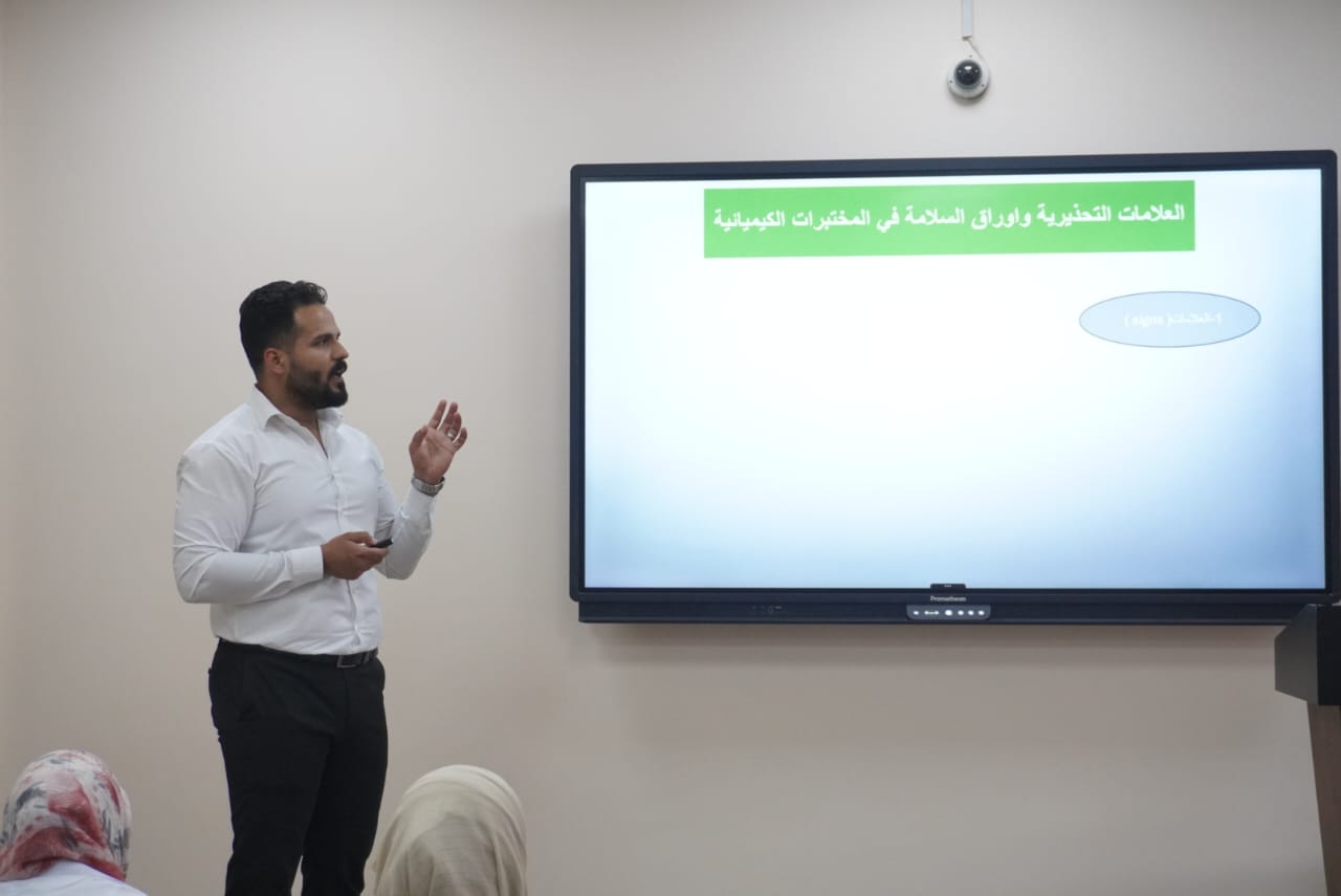 The training included both theoretical and practical sessions that covered a range of topics related to general and chemical safety in laboratories, with a particular focus on major risks associated with chemical substances and methods for their safe handling. The program also reviewed the requirements of Occupational Safety and Health Administration (OSHA) standards and the procedures for reading Material Safety Data Sheets (MSDS), in line with internationally approved standards.