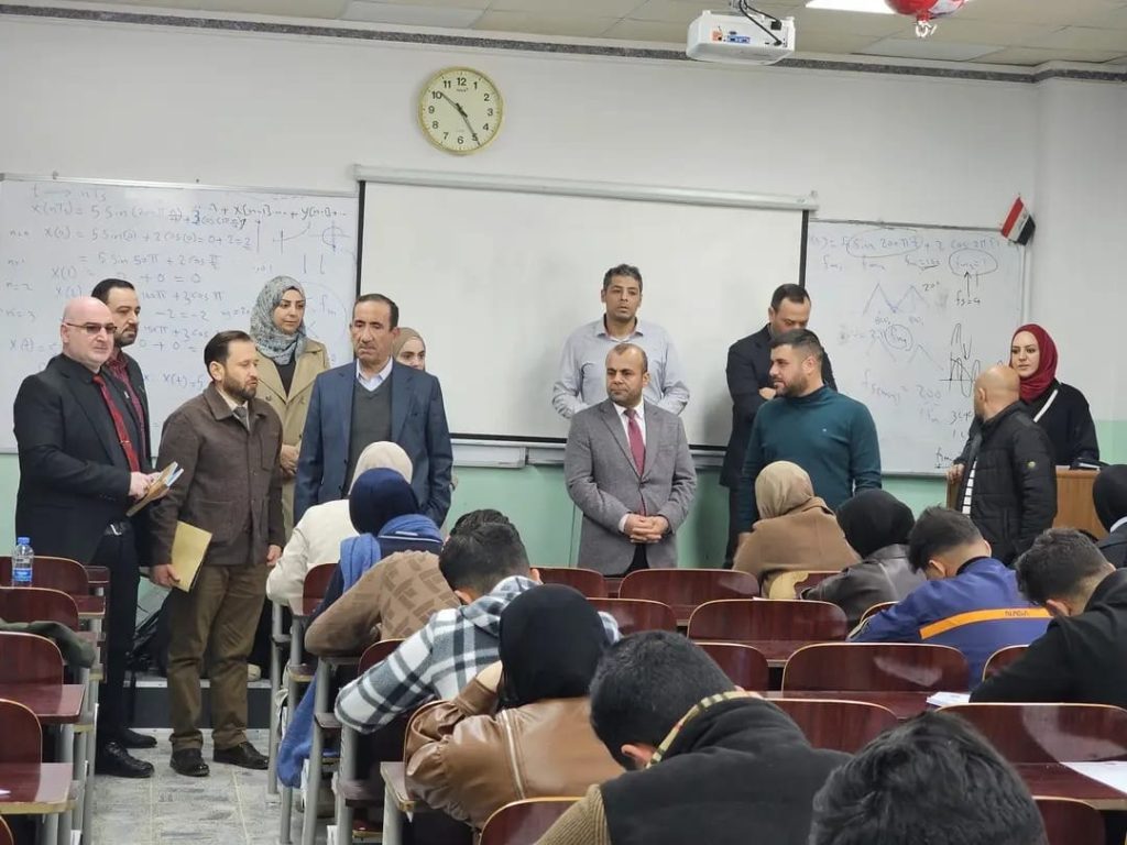 The Assistant President of the University of Ninevah for Scientific Affairs, Prof. Dr. Jaafar Ramadan Mohammed, attended part of the examination to review the examination process and ensure the implementation of academic twinning standards according to the joint plans between the two universities.