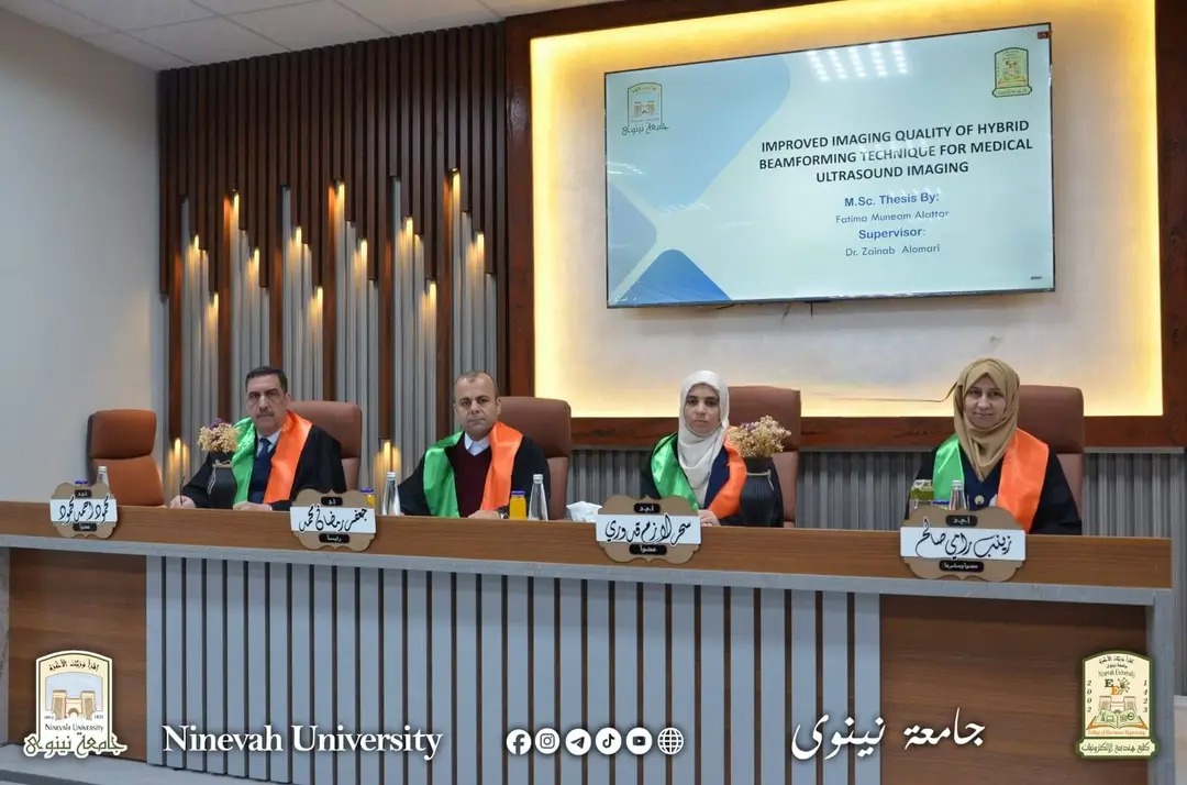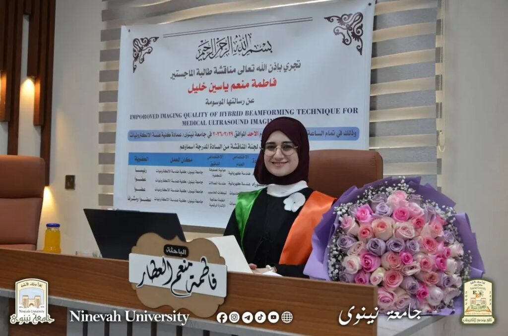 The College of Electronic Engineering at the University of Ninevah / Department of Communications Engineering discussed, on Sunday 29/03/2026, the Master’s thesis submitted by the student Fatima Munim Al-Attar, entitled: