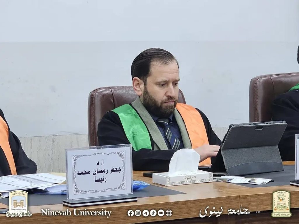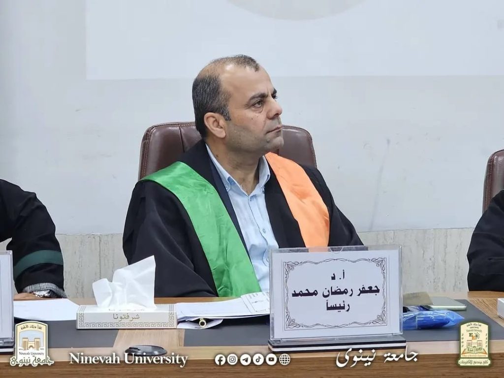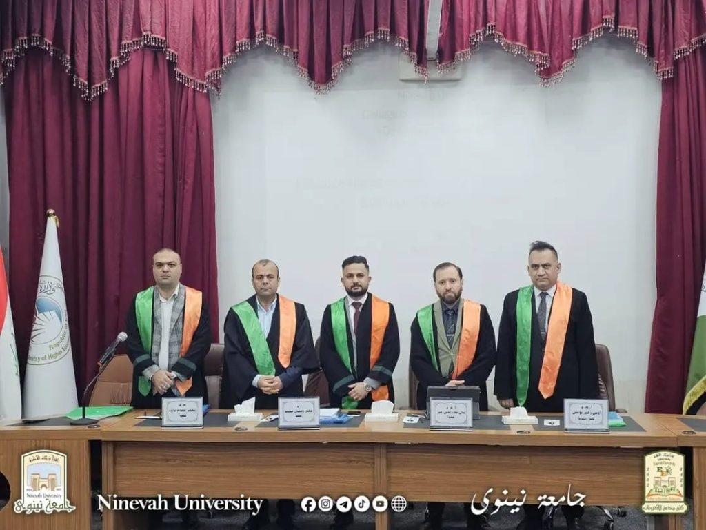 Part of the discussion was attended by Prof. Dr. Khalid Khalil Mohammed, the Dean of the College, who commended the scientific efforts made in completing the thesis. At the end of the defense, the thesis was approved and accepted in partial fulfillment of the requirements for the Master’s degree.
