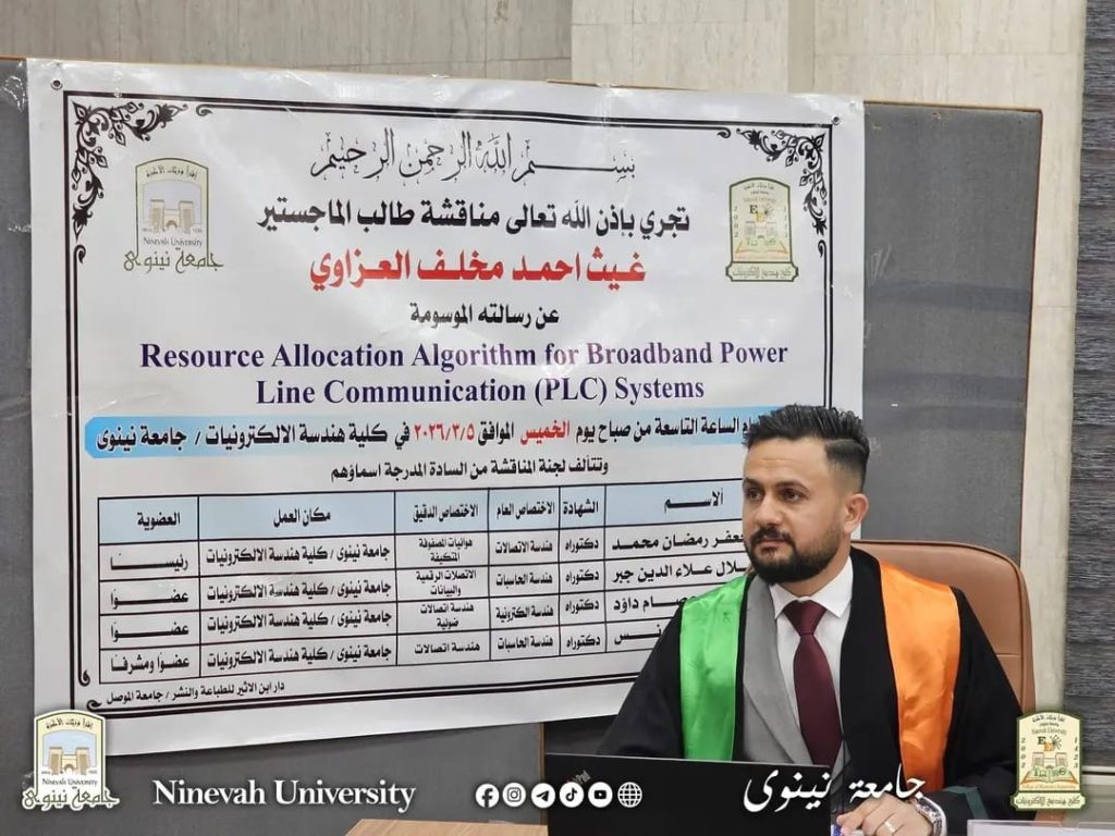 A master’s thesis at the University of Ninevah / College of Electronics Engineering by the student Ghaith Ahmed Makhlaf was discussed on Thursday, March 5, 2026, entitled: