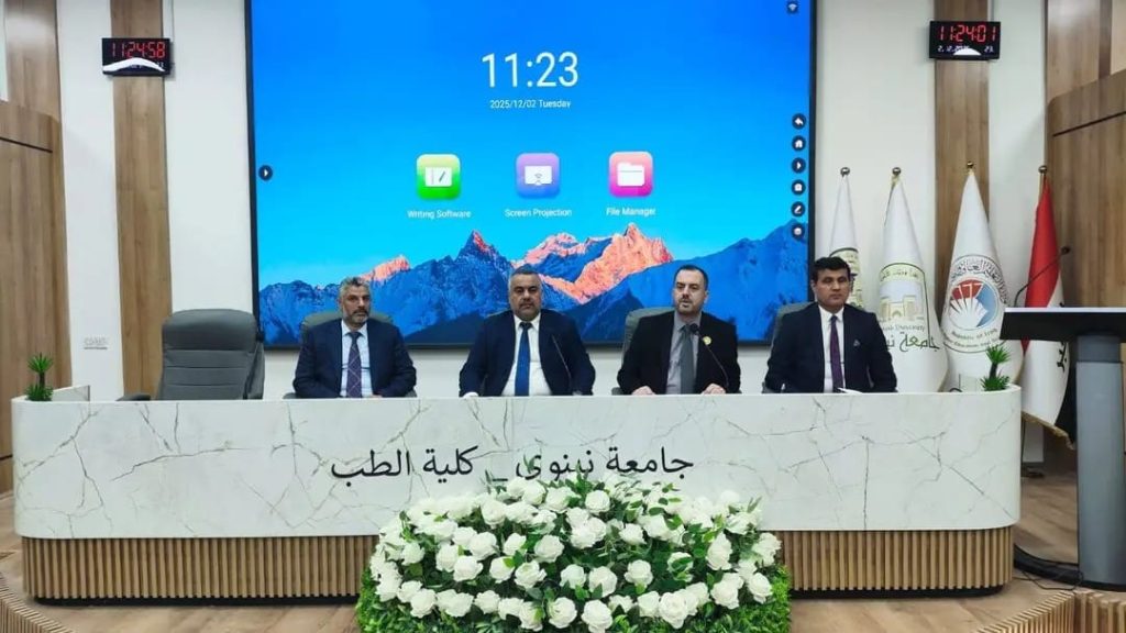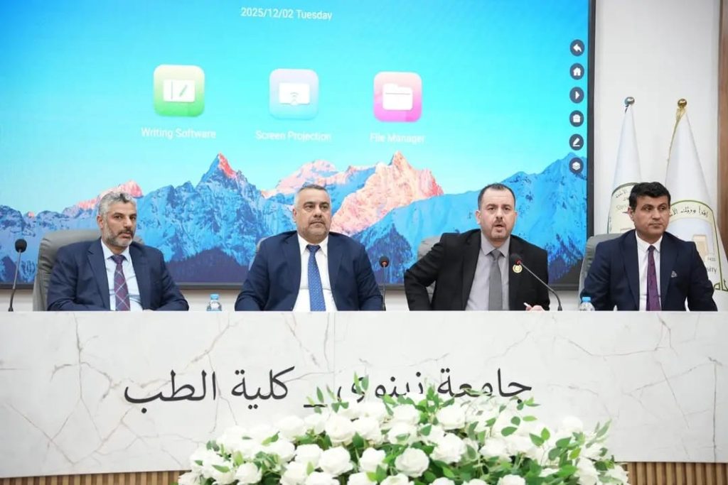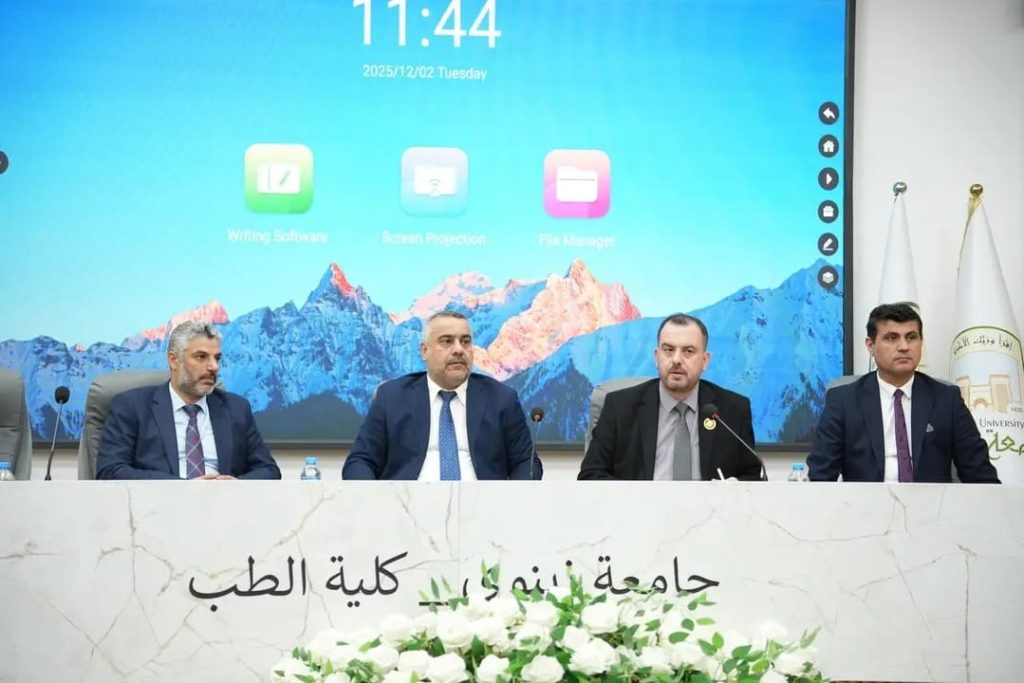 The College of Medicine at the University of Ninevah welcomed the President of the University, Prof. Dr. Osama Al-Mashhadani, during his visit to the college and his meeting with first-year students at the beginning of their new academic year. The visit was attended by the Dean of the College, Asst. Prof. Dr. Mu’min Junaid Al-Dabooni, the Assistant Dean for Administrative Affairs, Dr. Ali Abbas, and the Assistant Dean for Scientific Affairs, Asst. Prof. Dr. Abdullah Shakir.