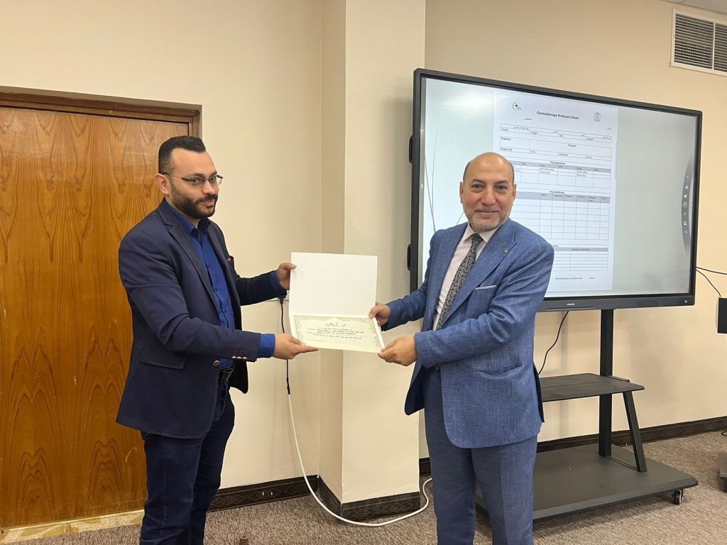 At the end of the event, the Dean of the College presented a certificate of appreciation to the lecturer in recognition of his efforts to enrich the scientific knowledge of the college’s students.