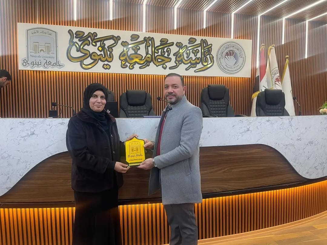 The workshop was delivered by Prof. Dr. Kawakib Salem Mohammed, a faculty member at the University of Al-Hamdaniya and a former member of the ministerial committee for the National English Language Test. She addressed key topics related to the mechanisms of the national test, the main challenges faced by applicants, and the opportunities it offers in supporting the academic process and enhancing the competencies of students and researchers.