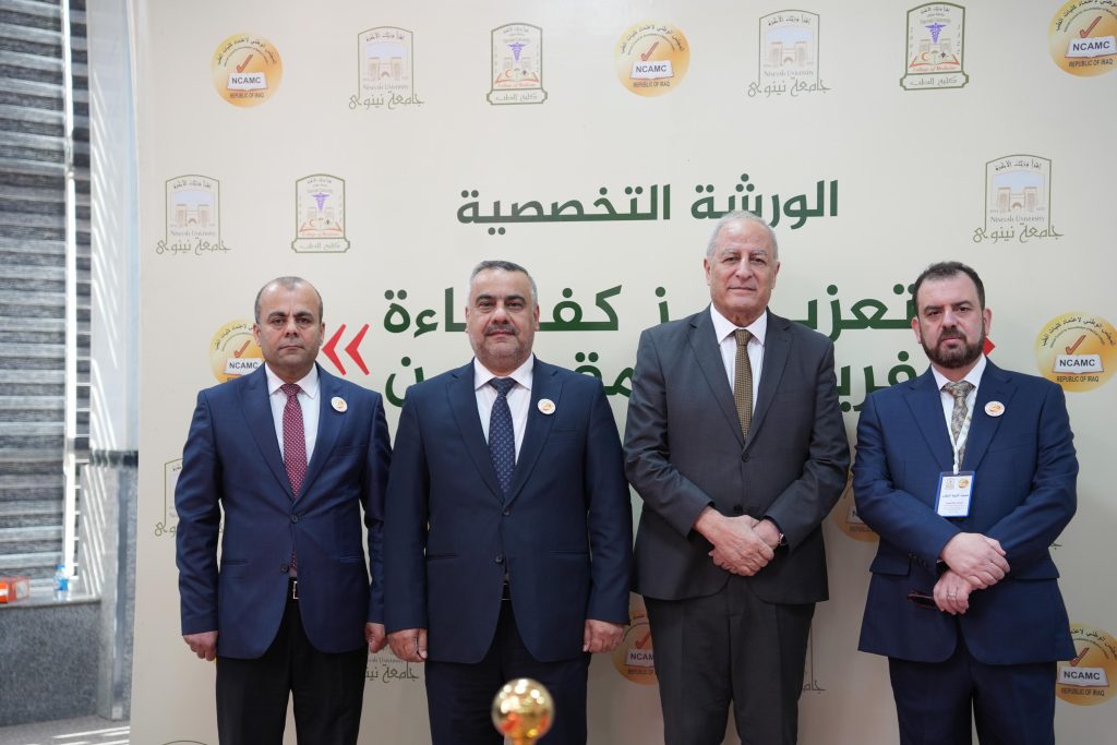 The workshop was attended by several prominent academic figures, most notably Professor Dr. Muzahim Al-Khayat, Chairman of the Parliamentary Committee on Higher Education; Professor Dr. Waheed Mahmoud Al-Ibrahimi, President of the University of Mosul; Professor Dr. Jaafar Ramadan Mohammed, Vice President for Scientific Affairs at the University of Ninevah; and Dr. Yusra Abdul Rahman, Chair of the National Council for Accreditation of Medical Colleges in Iraq, along with a number of experts in medical education.