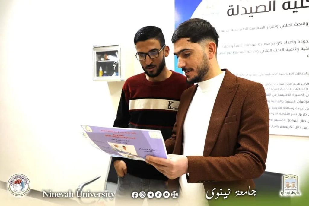 Under the patronage of the Presidency of the University of Ninevah, the Continuing Education Center, in cooperation with the College of Pharmacy, organized an awareness campaign entitled “The Proper Use of Dietary Supplements.” The campaign was held at the University Presidency building and targeted university staff and students, as part of the university’s efforts to promote health awareness on campus.
