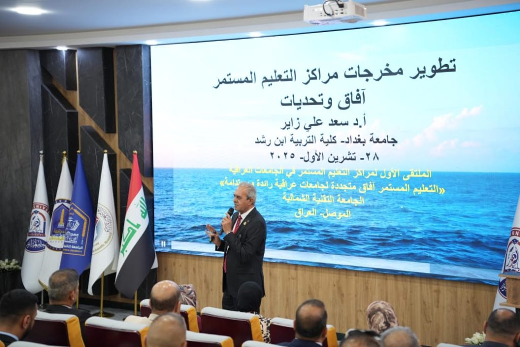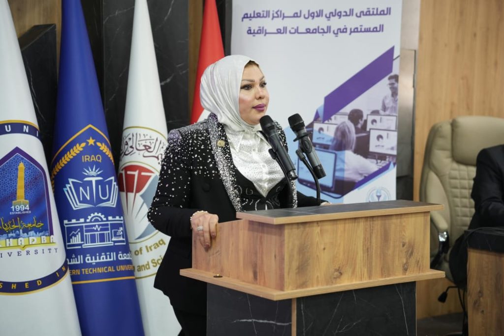 Upon the kind invitation of the President of the Northern Technical University, Professor Dr. Alia Al-Attar, and in the presence of the representative of the Minister of Higher Education and Scientific Research, Director of the Research and Development Department, Professor Dr. Lubna Khamis, as well as the President of Al-Hamdaniya University, Professor Dr. Nashaat Sliwa, assistant university presidents for scientific affairs, and directors of continuing education centers from all Iraqi public and private universities,