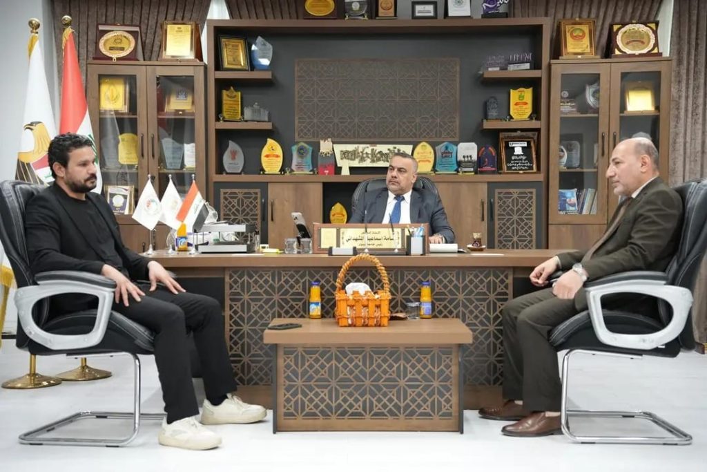 The President of the University of Ninevah, Prof. Dr. Osama Al-Mashhadani, received a number of representatives from volunteer organizations and groups in the province, in the presence of Asst. Prof. Dr. Maysar Mohammed Ali Al-Qutaji, Dean of the College of Pharmacy, and Dr. Tamara Riyadh Thanoon, Director of the Department of Student Activities at the university.