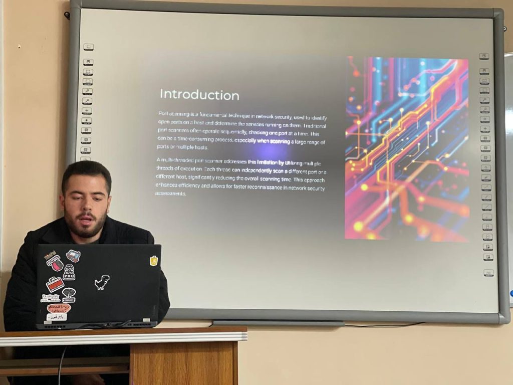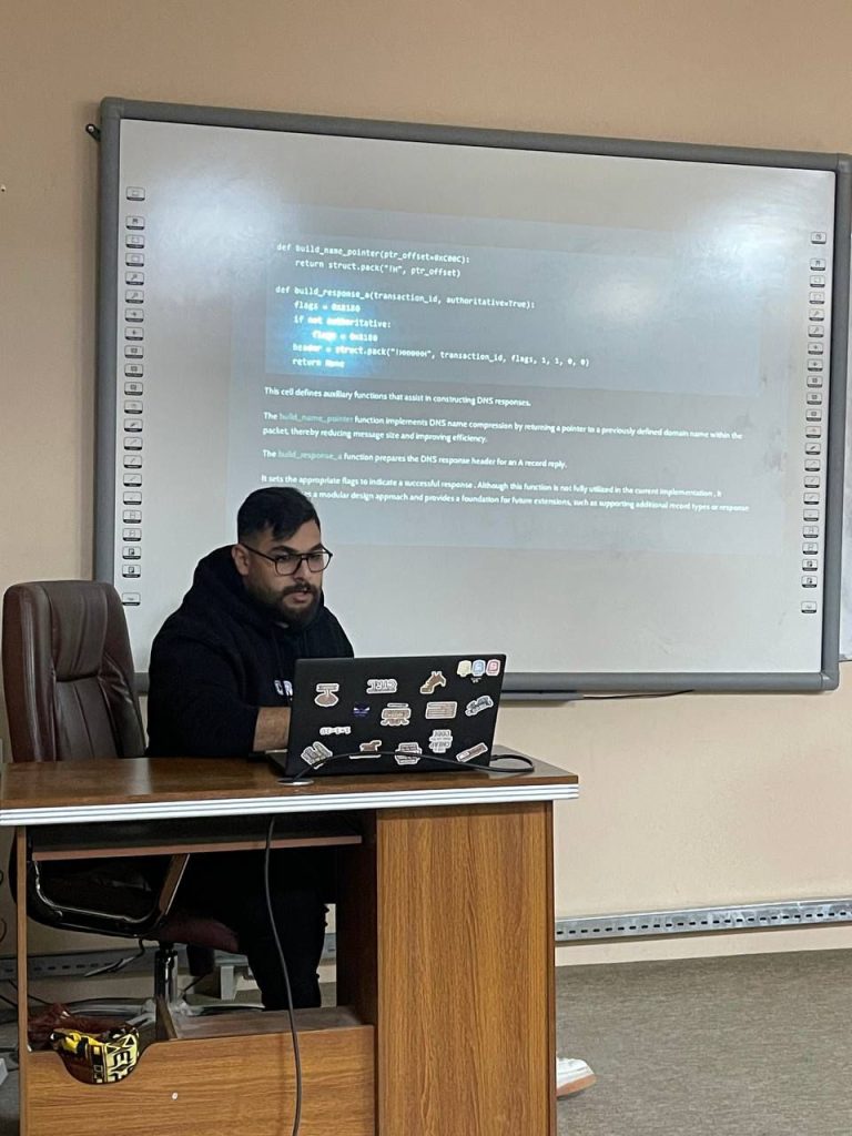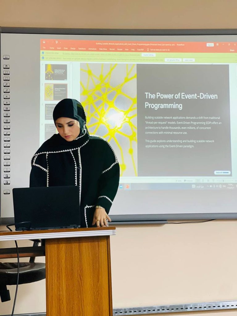 بتوجيه ودعم من السيدة عميد كلية تكنولوجيا المعلومات الأستاذ الدكتورة منار يونس كشمولة المحترمة ، وضمن النشاطات العلمية الهادفة إلى تعزيز الجانب التطبيقي، قدّم طلبة المرحلة الرابعة في قسم شبكات الحاسوب والإنترنت سمنرات علمية في مادة برمجة الشبكات (Networks Programming)، بإشراف م.د.بلقيس طلال حسن.