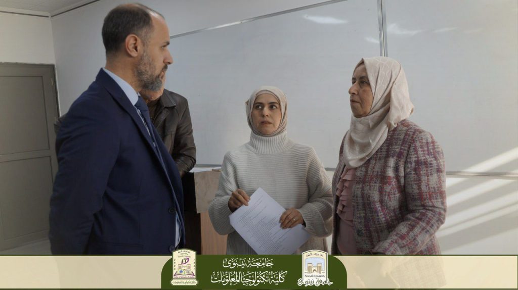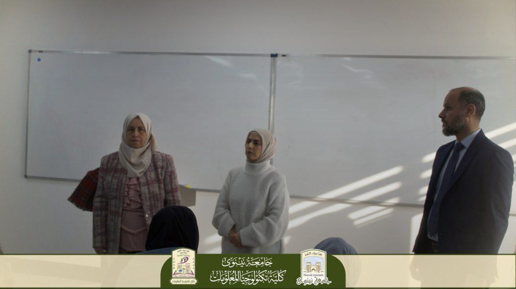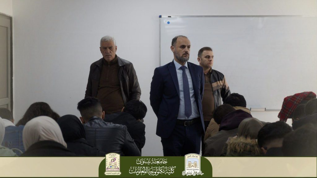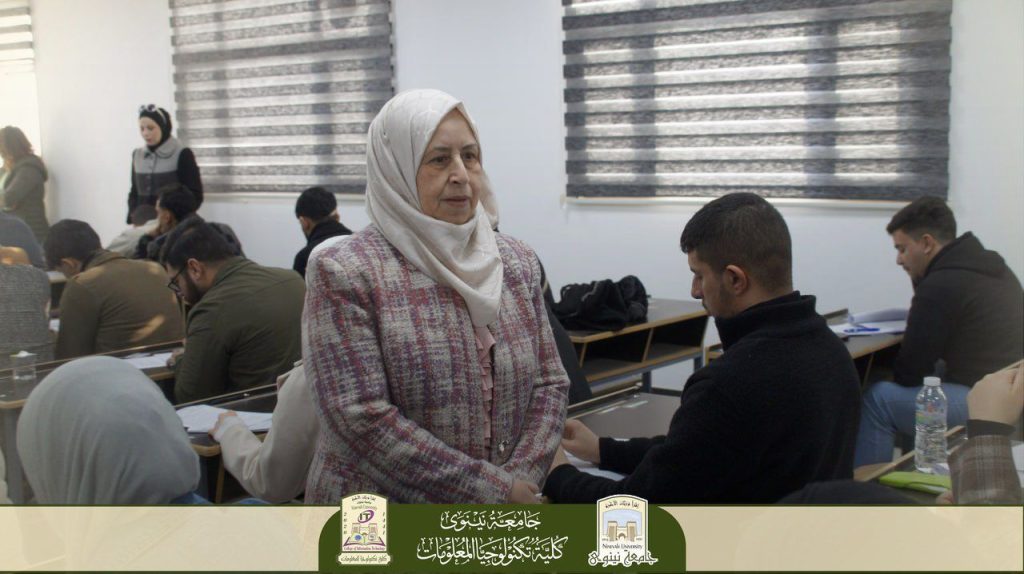 أجرت السيدة عميد كلية تكنولوجيا المعلومات، الأستاذ الدكتور منار يونس كشمولة، جولة تفقدية للقاعات الامتحانية للاطلاع المباشر على سير امتحانات الكورس الخريفي للعام الدراسي 2025-2026، رافقها خلالها السيد معاون العميد للشؤون العلمية الأستاذ المساعد الدكتور علي عثمان محمد، والسيد رئيس قسم البرمجيات الدكتور علي محسن أحمد.