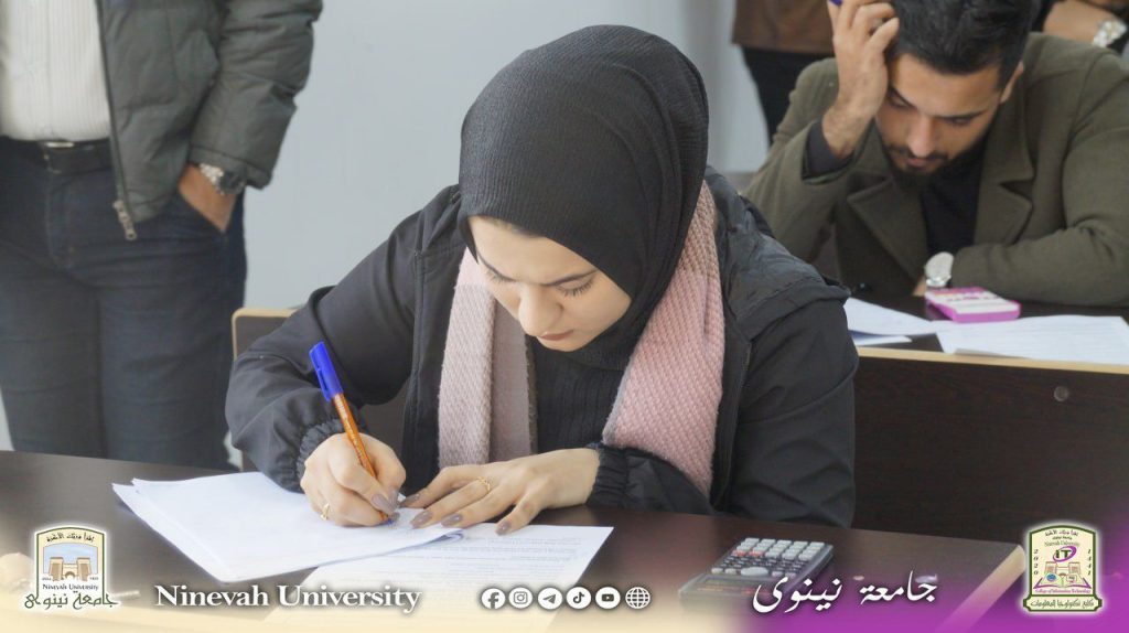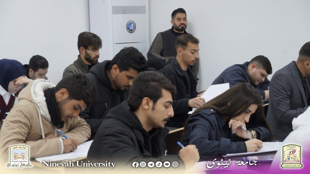 تواصل كلية تكنولوجيا المعلومات في جامعة نينوى، اليوم السبت الموافق 17 كانون الثاني 2026، إجراء الامتحانات النهائية للفصل الدراسي الخريفي للعام الدراسي 2025–2026، وسط أجواء من الانضباط العالي والتنظيم الدقيق.