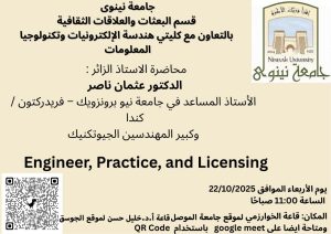 برعايه السيد رئيس جامعة نينوى الأستاذ الدكتور أسامة المشهداني المحترم، وبإشراف مباشر من قبل السيدة عميد كلية تكنولوجيا المعلومات الأستاذ الدكتورة منار يونس كشمولة المحترمة نظّمت كلية تكنولوجيا المعلومات ورشة عمل بعنوان “اختيار المجلات العلمية في المستوعبات الدولية”، وذلك ضمن خطة نشاطاتها للعام الدراسي الحالي. قدّم الورشة كلٌّ منم.د. أحمد قاسم أحمدم.د. كرم محمد مهدي...