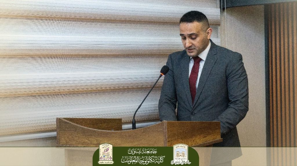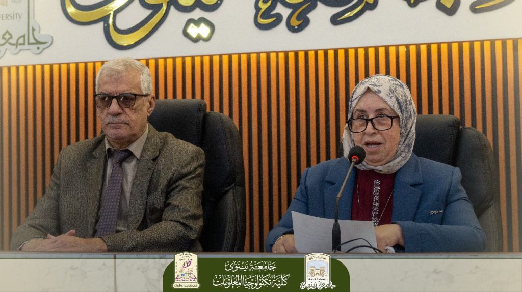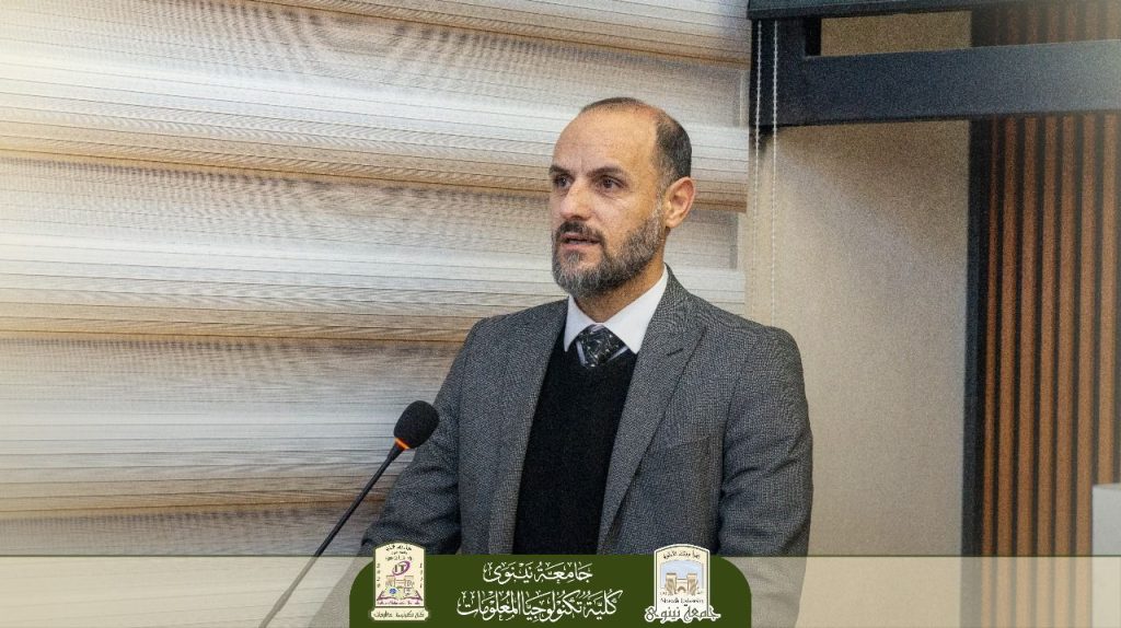 This was followed by a speech from the Assistant Dean for Scientific Affairs, Assistant Professor Dr. Ali Othman, who emphasized the importance of students choosing to major in Information Technology and the vast future opportunities this field offers, stressing the college’s support for them in their academic journey.