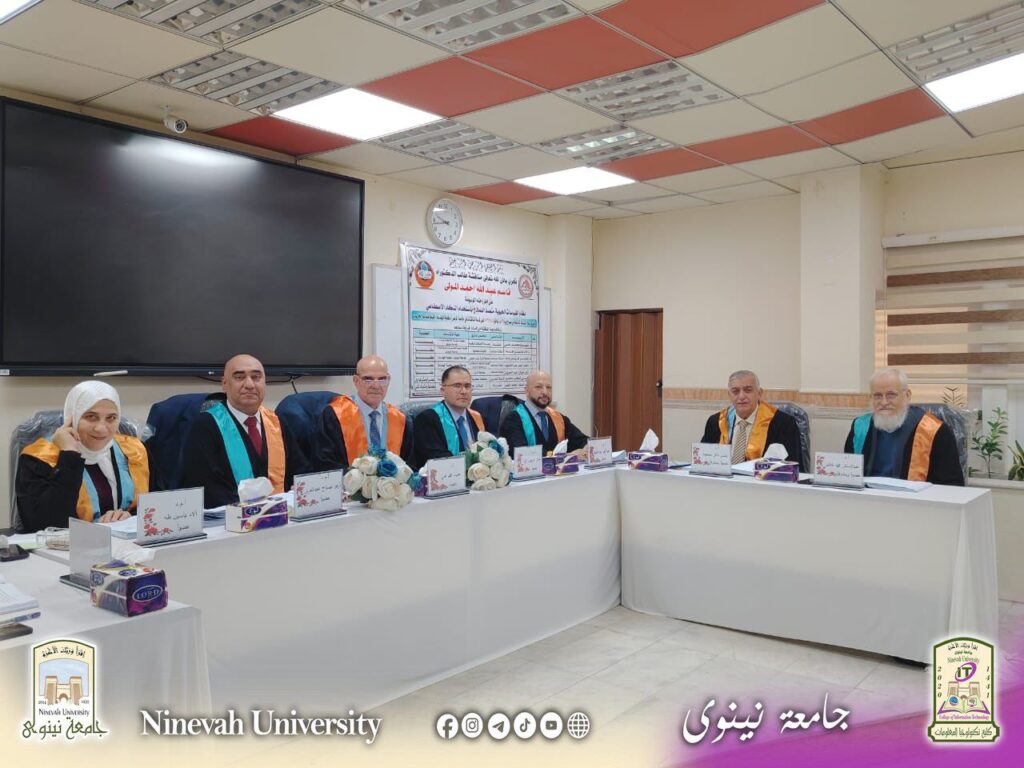 The Head of the Computer Networks and Internet Department at the College of Information Technology, University of Nineveh, Assistant Professor Dr. Azhar Sabah Abdul Aziz, participated as a member of the doctoral dissertation defense committee for student Qasim Abdullah Ahmed at the College of Engineering, University of Mosul.