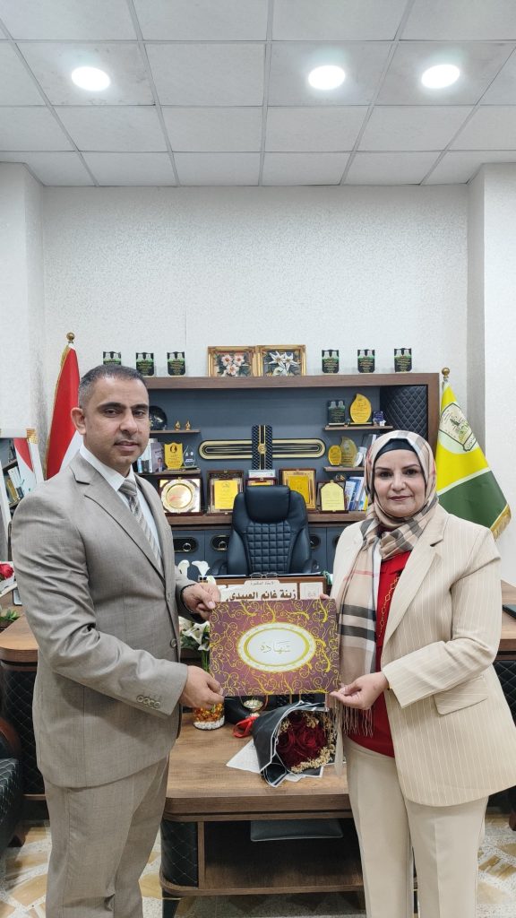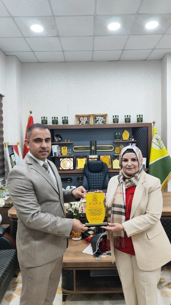 تقديرٌ للتميّز وتكريسٌ لقيم العطاء وفي إطار حرص عمادة كلية القانون على تعزيز بيئة العمل الإيجابية، ونشر ثقافة التميز، وتقدير الكفاءات المخلصة، قامت السيدة عميد الكلية أ.د زينة غانم العبيدي اليوم الاثنين الموافق 6/10/2025 بتكريم مسؤول شعبة الادارة الدكتور عمار مرعي بدرع الكلية ، وذلك تقديرًا لجهوده المتميزة، والتزامه المهني، وإسهاماته الفاعلة في الارتقاء بالأداء الإداري والخدمي داخل الكلية.