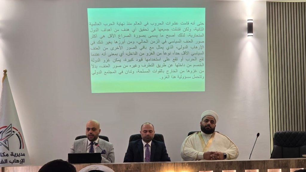 كما ألقى السيد مدير مكتب المديرية العامة لمكافحة الإرهاب الفكري – فرع نينوى الشيخ رامي العبادي كلمةً أوضح فيها جهود المديرية في التصدي للفكر المتطرف عبر حملات التوعية والتثقيف، ومتابعة النشاطات الإعلامية التي تروّج للكراهية، مؤكداً على أهمية التعاون بين المؤسسات الأمنية والأكاديمية في بناء وعي مجتمعي رافض لكل أشكال التعصب.