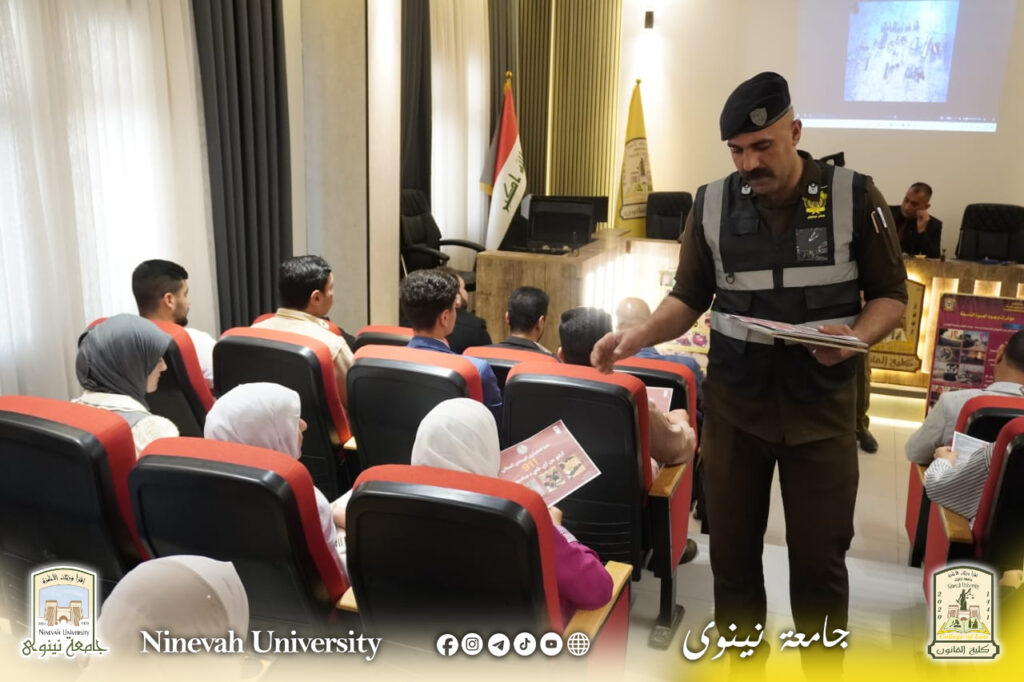 برعاية ودعم مباشر من قبل السيدة عميد كلية القانون الأستاذ الدكتورة زينة غانم العبيدي، أقامت مديرية مكافحة المتفجرات، اليوم الاثنين الموافق 20/4/2026، محاضرة توعوية مهمة في كلية القانون بعنوان “مخاطر المتفجرات وكيفية التعامل معها”، وذلك بحضور السيد معاون العميد للشؤون الإدارية والمالية الدكتور خلدون فاضل، والسيد معاون العميد للشؤون العلمية الدكتور أديب محمد جاسم الحماوي، في إطار الجهود المستمرة لتعزيز الوعي الأمني لدى الطلبة والمجتمع الأكاديمي، ومن مبدأ التعاون المشترك بين كلية القانون والمؤسسات الأمنية خدمةً للصالح العام.