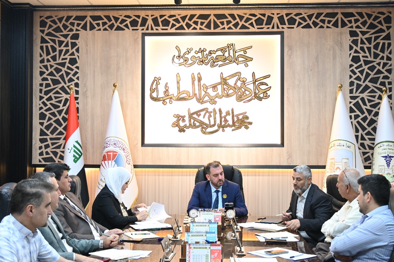 عقد مجلس كلية الطب / جامعة نينوى جلسته الثانية للعام الدراسي 2025 – 2026 برئاسة السيد عميد الكلية الأستاذ المساعد الدكتور مؤمن جنيد الدبوني، وبحضور السادة المعاونين ورؤساء الفروع العلمية ومدير التسجيل.