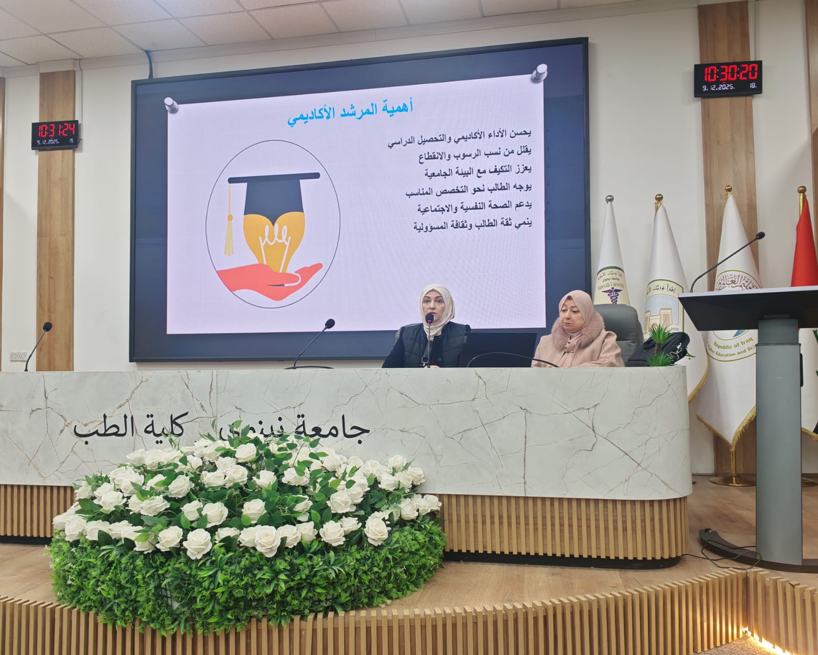 برعاية السيد رئيس جامعة نينوى الأستاذ الدكتور أسامة المشهداني، وبتوجيه مباشر من عميد كلية الطب الأستاذ المساعد الدكتور مؤمن جنيد الدبوني، أقامت وحدة الإرشاد النفسي والتوجيه التربوي في كلية الطب، وبالتعاون مع شعبة التعليم المستمر، صباح يوم الثلاثاء الموافق 9/12/2025 ورشة عمل تعريفية بعنوان «إعداد المرشدين الأكاديميين». جاءت هذه الورشة ضمن خطة الكلية لتطوير مهارات الإرشاد الجامعي والارتقاء بآليات دعم الطلبة أكاديميًا ونفسيًا، وبما يضمن تحسين جودة العملية التعليمية.