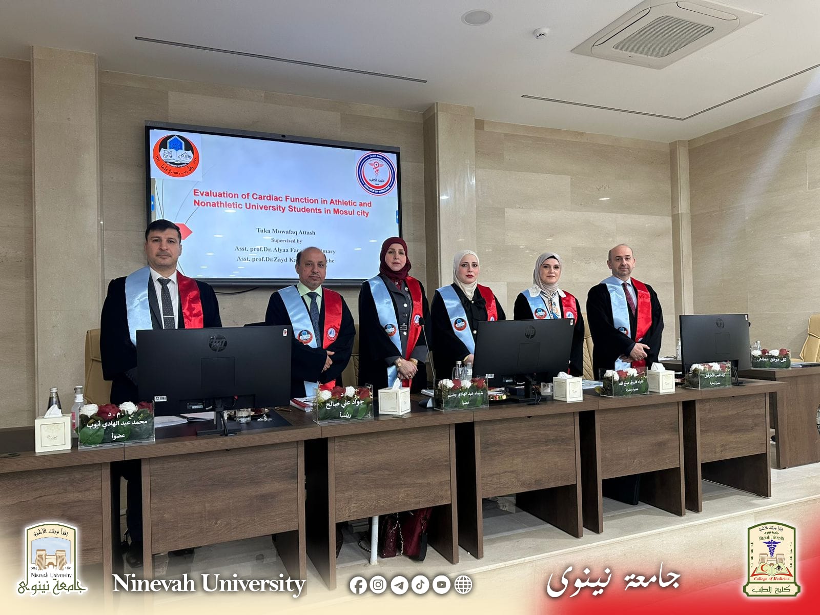 “تقييم وظيفة القلب لدى طلاب الجامعة الرياضيين وغير الرياضيين في مدينة الموصل”، والتي تقدّمت بها الطالبة تقى موفق عطاش، وذلك يوم الاثنين الموافق 16/2/2026 على قاعة الرازي – كلية الطب / جامعة الموصل.