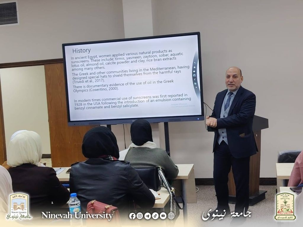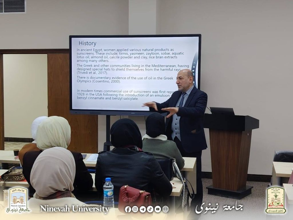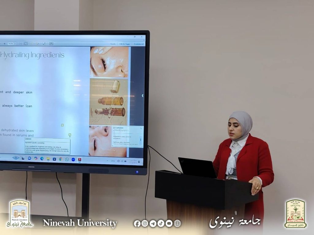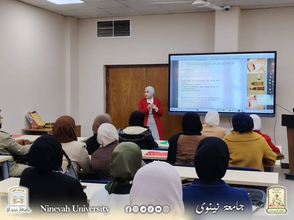 وتضمّنت الدورة سلسلة من المحاضرات العلمية والتطبيقية والتي حاضر فيها كلٌّ من السيد عميد كلية الصيدلة ا.م.د ميسر محمد علي القوطجي، والصيدلانية زينب إبراهيم، حيث تناولت أحدث الأسس العلمية والعملية في مجال العناية بالبشرة داخل الصيدليات المجتمعية.