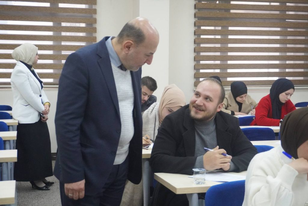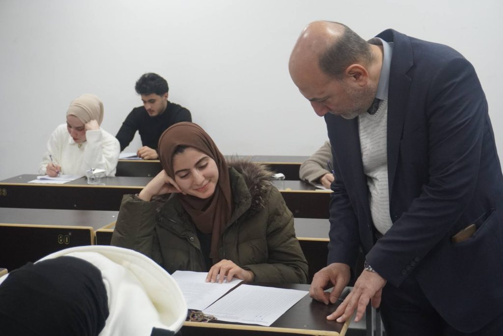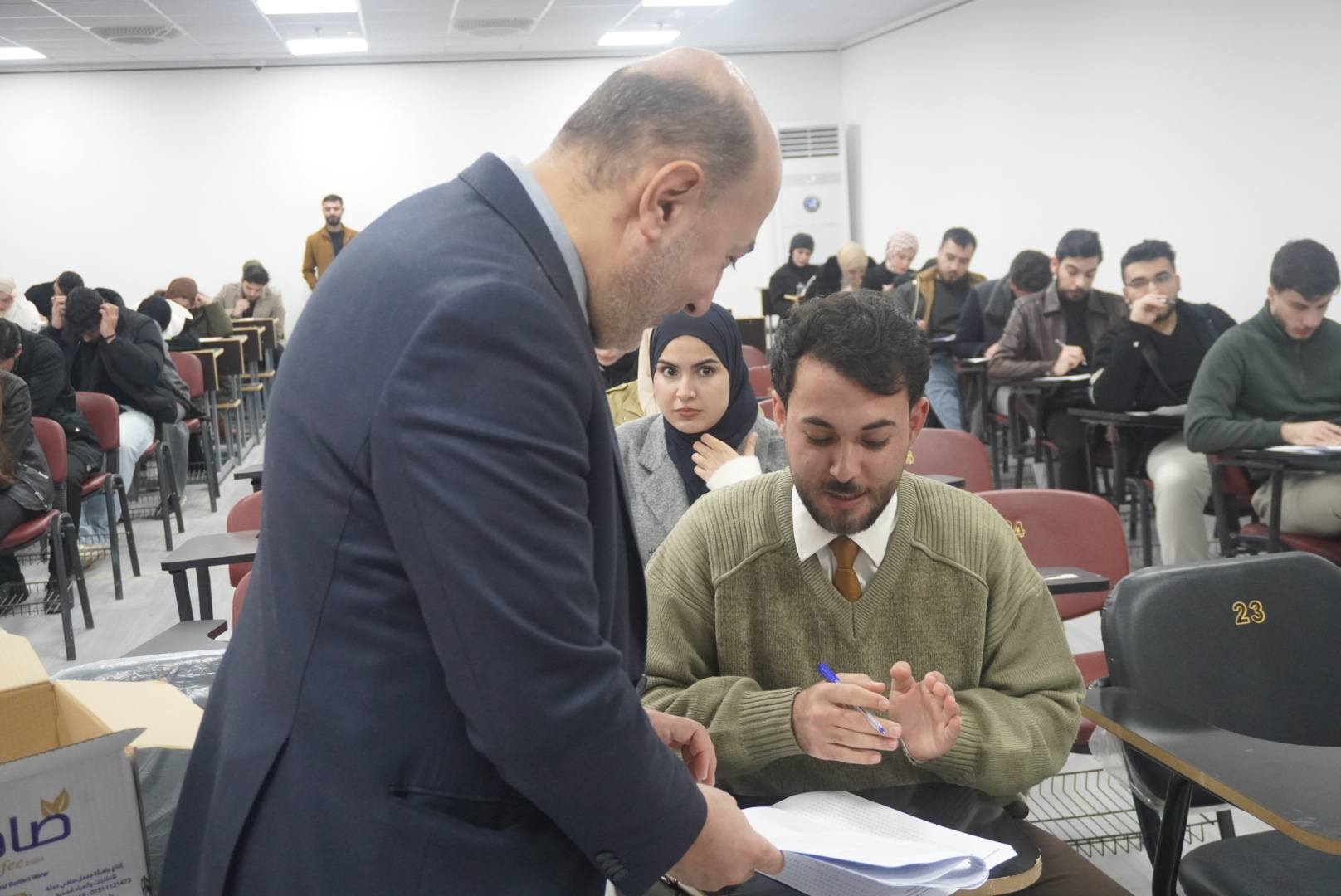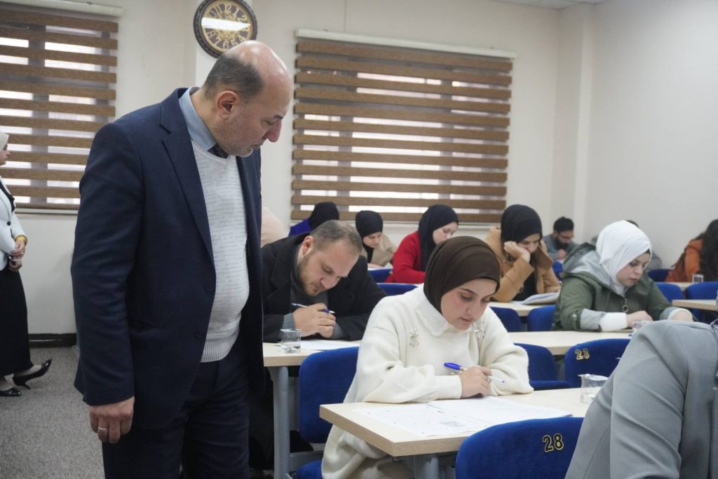 حيث تفقد عميد الكلية ا.م.د ميسر محمد علي القوطجي يرافقه السيد معاون العميد للشوؤن العلمية ا.م.د حسن سعد الديو جي سير العملية الإمتحانية واطّلع على طبيعة الأسئلة مؤكداً حرص الكلية على توفير الدعم الكامل للطلبة من خلال توفير كافة المستلزمات الضرورية والفنية والخدمية من أجل بيئة إمتحانية مناسبة.