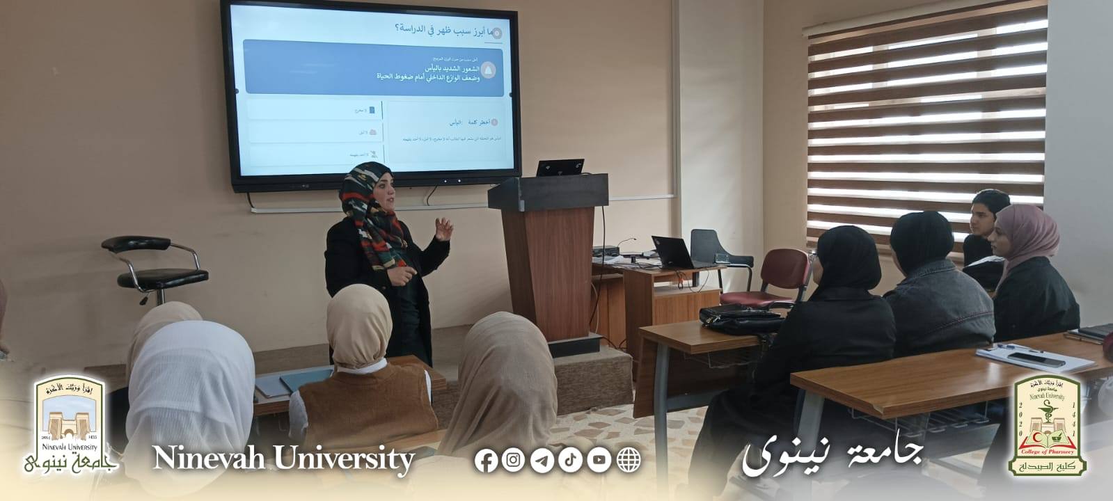 في إطار مسؤوليتها الأكاديمية والمجتمعية، أقامت كلية الصيدلة ورشة عمل علمية تناولت أهمية الصحة النفسية في الوقاية من السلوكيات الخطرة، مع التركيز على فهم العوامل المؤدية إلى التفكير بإيذاء النفس وسبل التدخل المبكر وذلك في يوم الثلاثاء الموافق 24 شباط 2026.