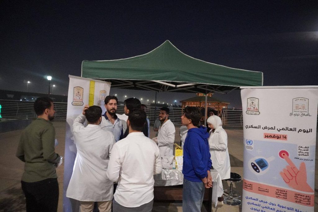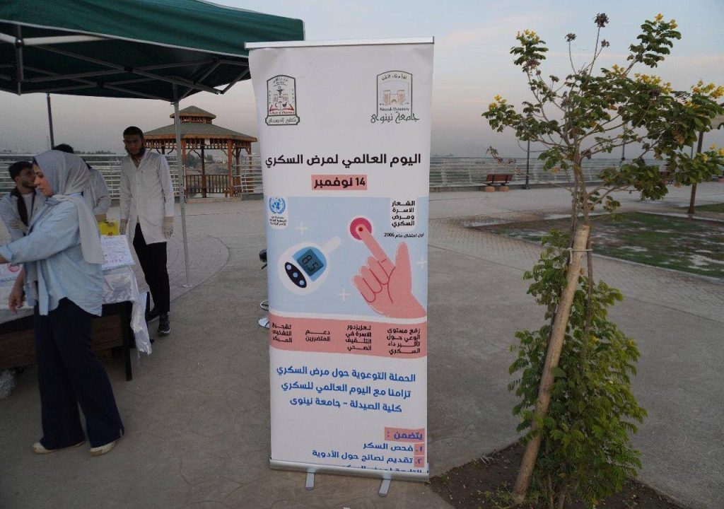 نظم فرع الأدوية والسموم في الكلية حملة توعوية حول مرض السكري، وذلك يوم الأربعاء الموافق 5 تشرين الثاني 2025، مستهدفة العوائل الموصلية في كورنيش الجوسق بمدينة الموصل.