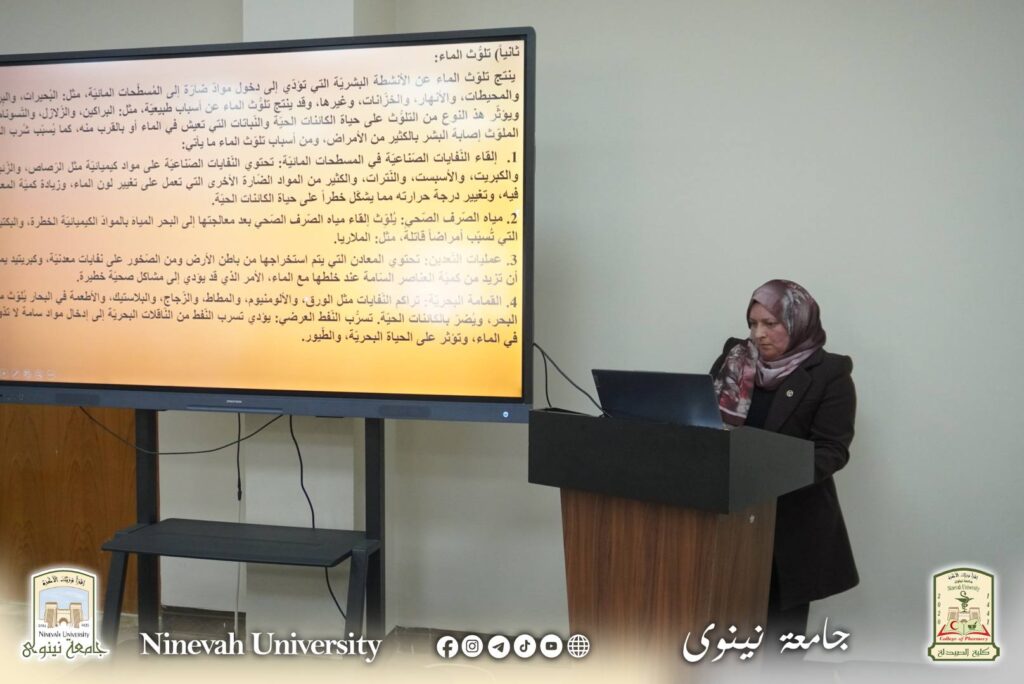 كلية الصيدلة تنظم محاضرة علمية حول تلوث البيئة وآثاره الصحية على الإنسان