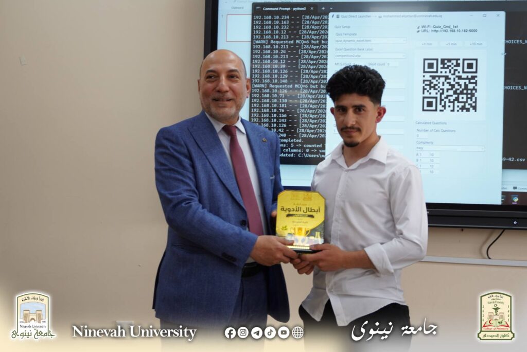 برعاية السيد عميد الكلية الأستاذ الدكتور ميسر محمد القوطجي، وبإشراف عدد من تدريسيي الكلية،نظّمت عمادة كلية الصيدلة مسابقة علمية متميزة لطلبة الكلية، وذلك في يوم الثلاثاء الموافق 28 نيسان 2026، تحت عنوان “أبطال الأدوية”.