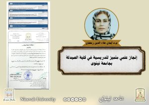 إنجاز علمي متميز لتدريسية في كلية الصيدلة بجامعة نينوى