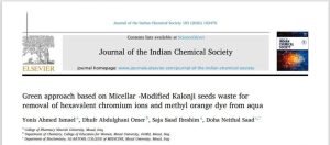 In line with the University of Nineveh’s strategic commitment to enhancing its portfolio of high-quality research publications indexed in reputable international databases, Dr. Younis Ahmed Ismail and Asst. Lect. Saja Saad Ibrahim have published a scientific research article entitled: “Green Approach Based on Micellar-Modified Kalonji Seeds Waste for the Removal of Hexavalent Chromium Ions and...