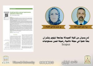 In alignment with the strategic vision of the University of Ninevah to promote high-quality scientific output and expand engagement with internationally indexed journals, and as part of its ongoing efforts to enhance its academic ranking and strengthen its research presence, two faculty members from the College of Pharmacy have published a research paper in a...