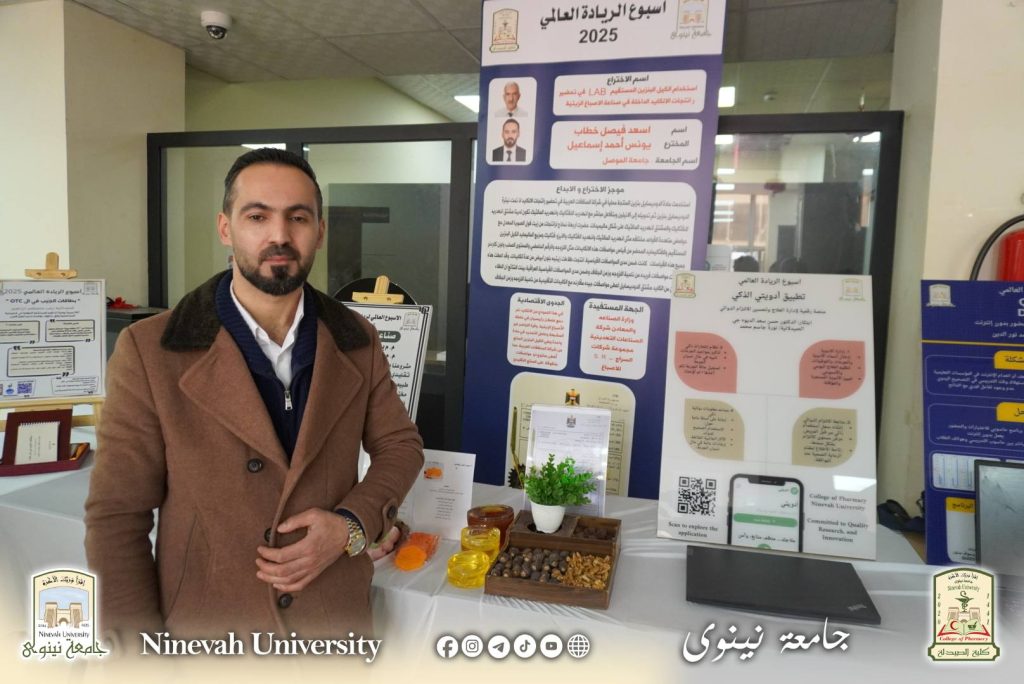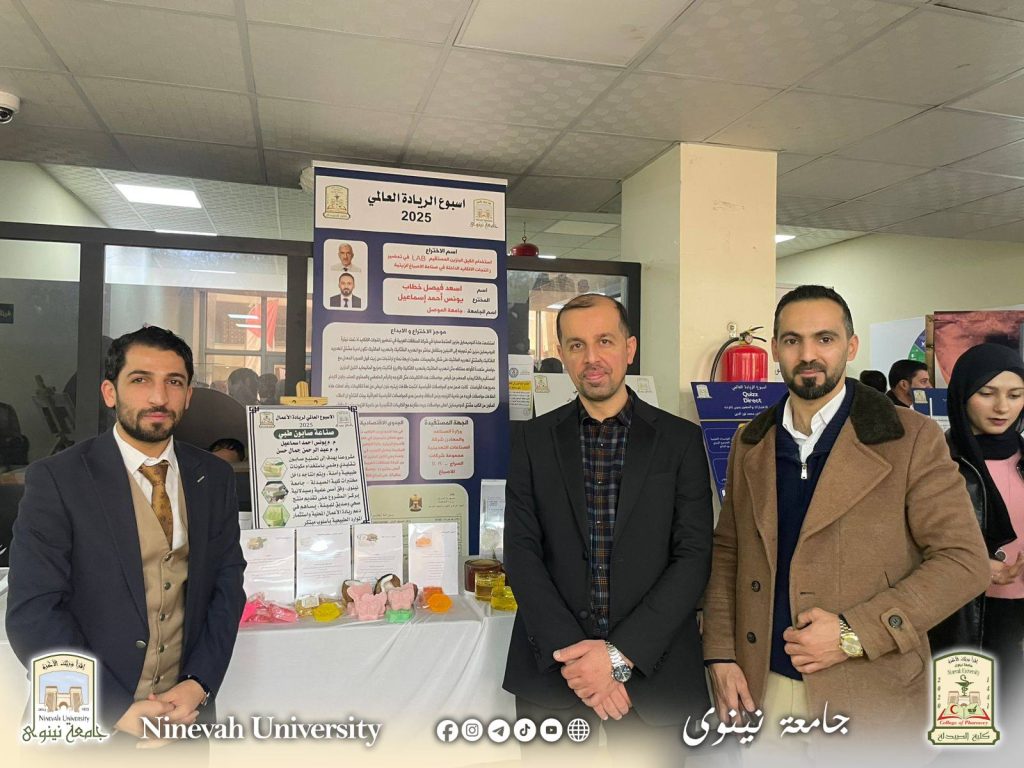 Under the patronage and in the presence of Professor Dr. Osama Ismail Al-Mashhadani, President of the University of Nineveh, and within the activities of Global Entrepreneurship Week 2026 (GEW) organized by the Department of Science and Technology Parks at the University Presidency, the College of Pharmacy participated in the launch of the week’s entrepreneurial events, which commenced on Sunday, February 8, 2026, amid a distinguished academic and official attendance.