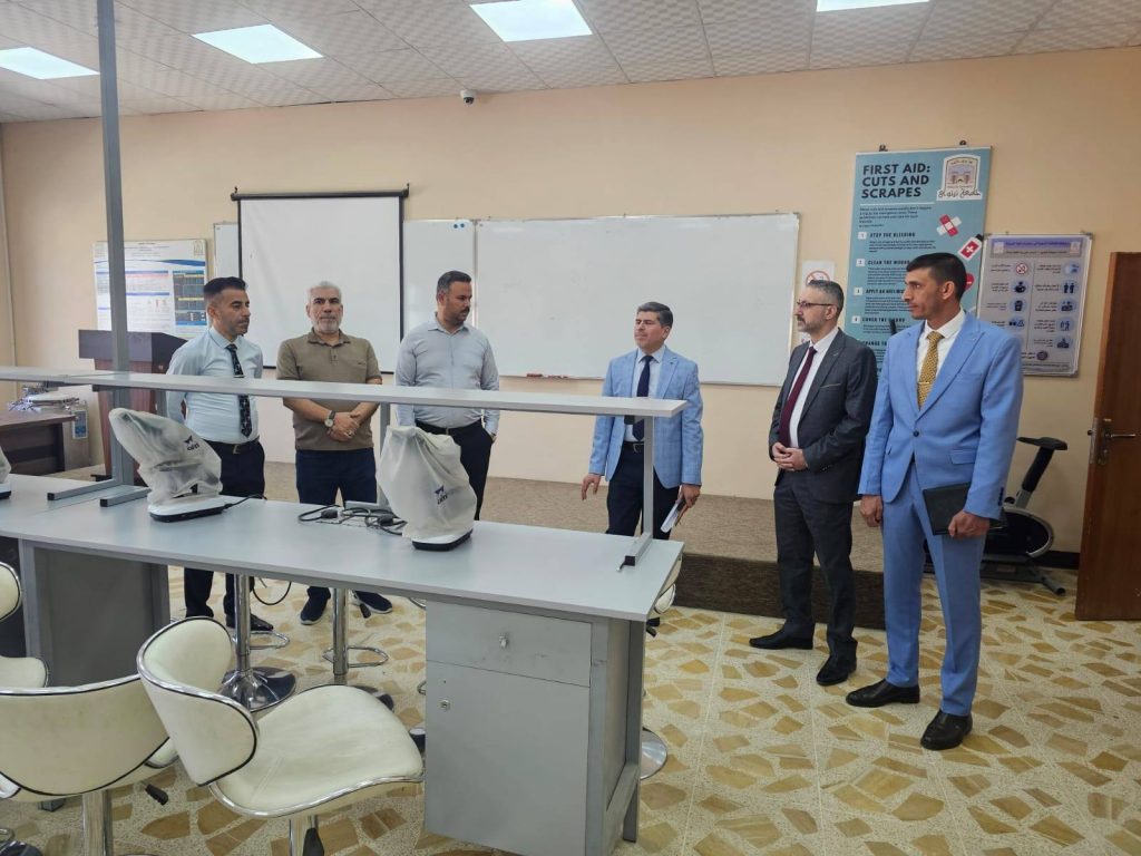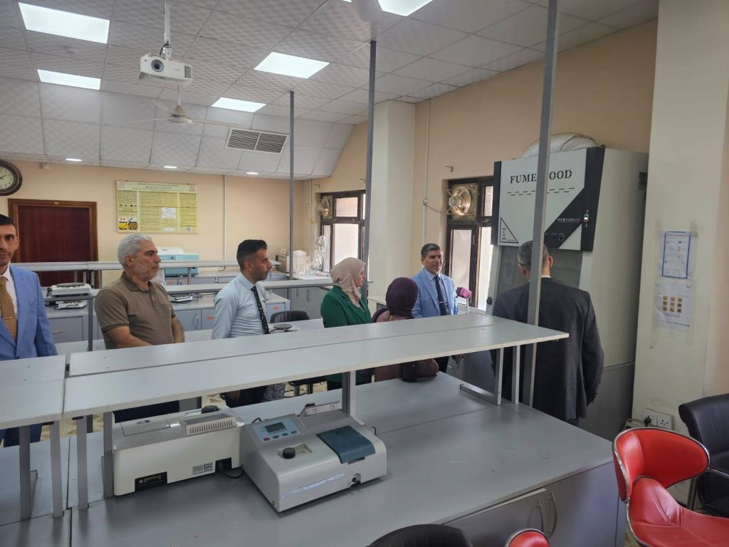 The committee was received by the College’s Assistant Dean for Administrative Affairs, Dr. Omar Thannon, and the Head of the Chemical and Biological Safety and Security Unit at the College, Dr. Elias Jassim, who accompanied the delegation on a tour of several laboratories. The tour included an overview of procedures for chemical inventory management, classification of dual-use materials, and verification of compliance with approved regulations and guidelines.