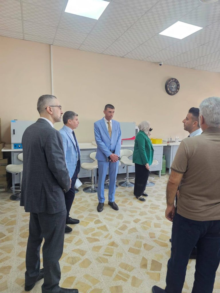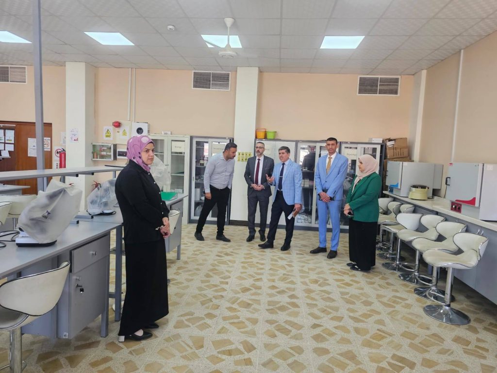 As part of the University of Ninevah’s commitment to fostering a safe educational and laboratory environment in line with the highest standards of university safety, a committee from the University Presidency, headed by Dr. Ahmed Hamdoun, Head of the Chemical and Biological Safety and Security Division, conducted a field visit to the College of Pharmacy on Wednesday, September 24, 2025. The visit aimed to follow up on the implementation of chemical, biological, and radiological safety and security requirements in both teaching and research laboratories.