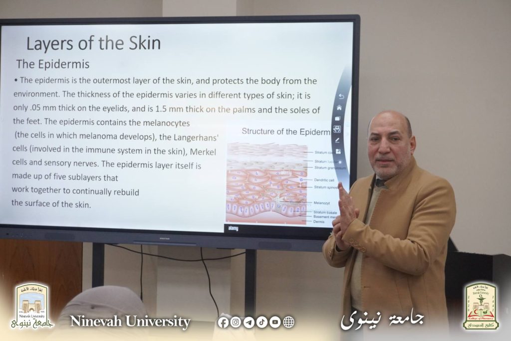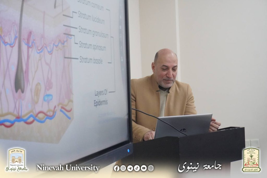 Within the College of Pharmacy’s ongoing approach to community service and the enhancement of professional competence among pharmaceutical personnel, the second edition of the intensive training course entitled “Professional Skin Care Management in Community Pharmacies” was launched on Sunday, 25 January 2026. The course will run for three days at the College’s main hall.