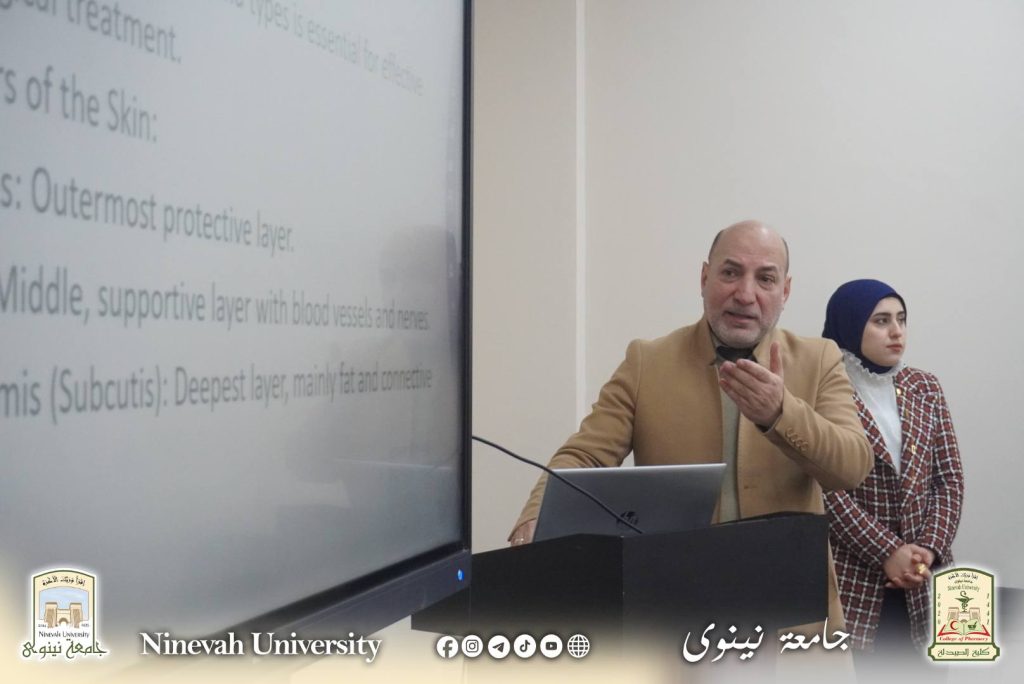 The activities of the first day commenced with a welcoming address delivered by the Dean of the College of Pharmacy, Assist. Prof. Dr. Mayser Mohammed Ali Al-Qoutji, in which he welcomed the participants and emphasized the importance of such specialized training courses in developing pharmacists’ practical and scientific skills in line with the requirements of professional practice in community pharmacies. This was followed by the delivery of a scientific lecture as part of the course modules.