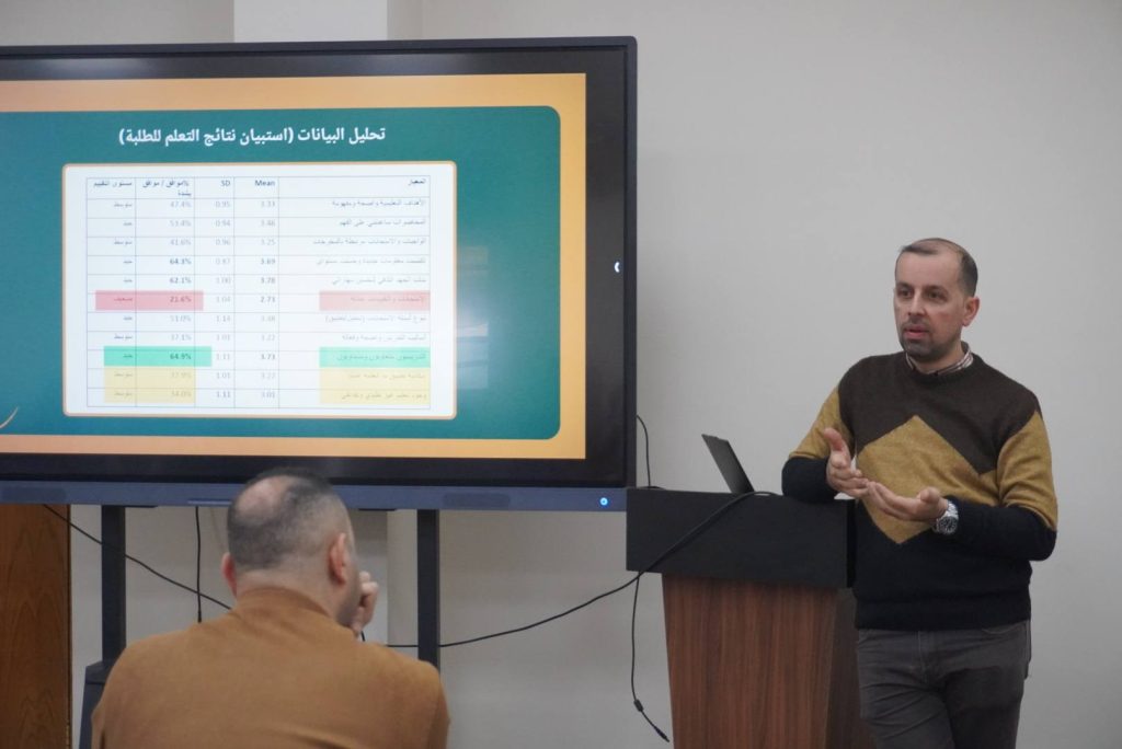 The lecture, which falls within the College’s ongoing commitment to quality assurance and academic excellence, aimed to achieve two main objectives: first, to evaluate the extent to which the intended learning outcomes of the College’s academic programs have been achieved and to assess their effectiveness; and second, to examine students’ perspectives and measure their level of satisfaction with the educational, administrative, and advisory services provided to them. This was accomplished through a scientific analysis of the data collected via the two questionnaires.
