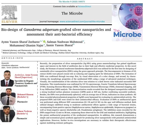 a scientific research paper derived from their graduation project for the academic year 2024–2025 has been successfully published in a renowned international journal indexed by Scopus and Elsevier, namely The Microbe, classified as Q2 in its specific field and Q3 overall.