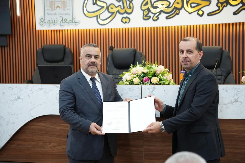 As part of the University of Ninevah’s ongoing efforts to promote a culture of excellence and advance scientific research, Prof. Dr. Osama Al-Mashhadani, President of the University of Ninevah, honored a group of distinguished faculty members on Monday, October 6, 2025, including several academics from the College of Pharmacy. The honorees received letters of appreciation in recognition of their scholarly achievements and research contributions published in reputable international journals, which have enhanced the university’s standing in global academic rankings.