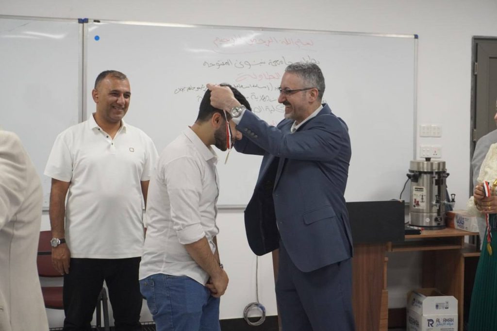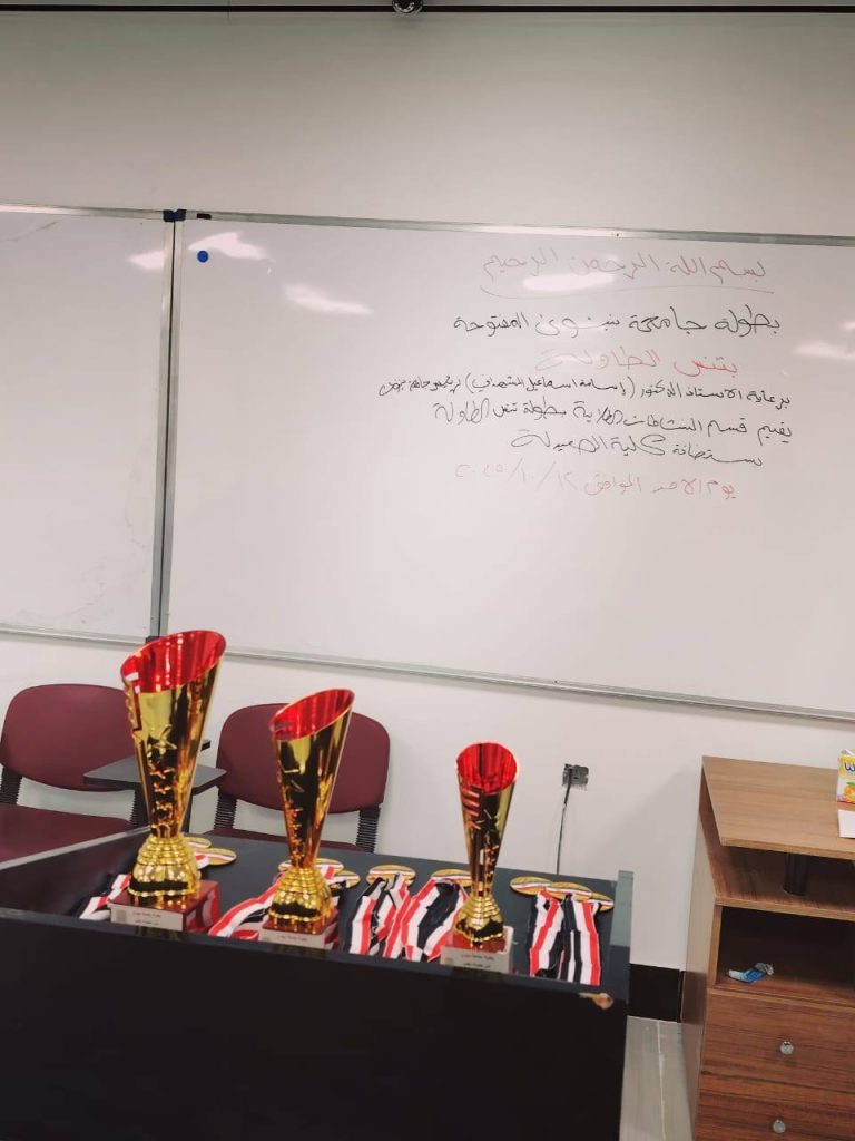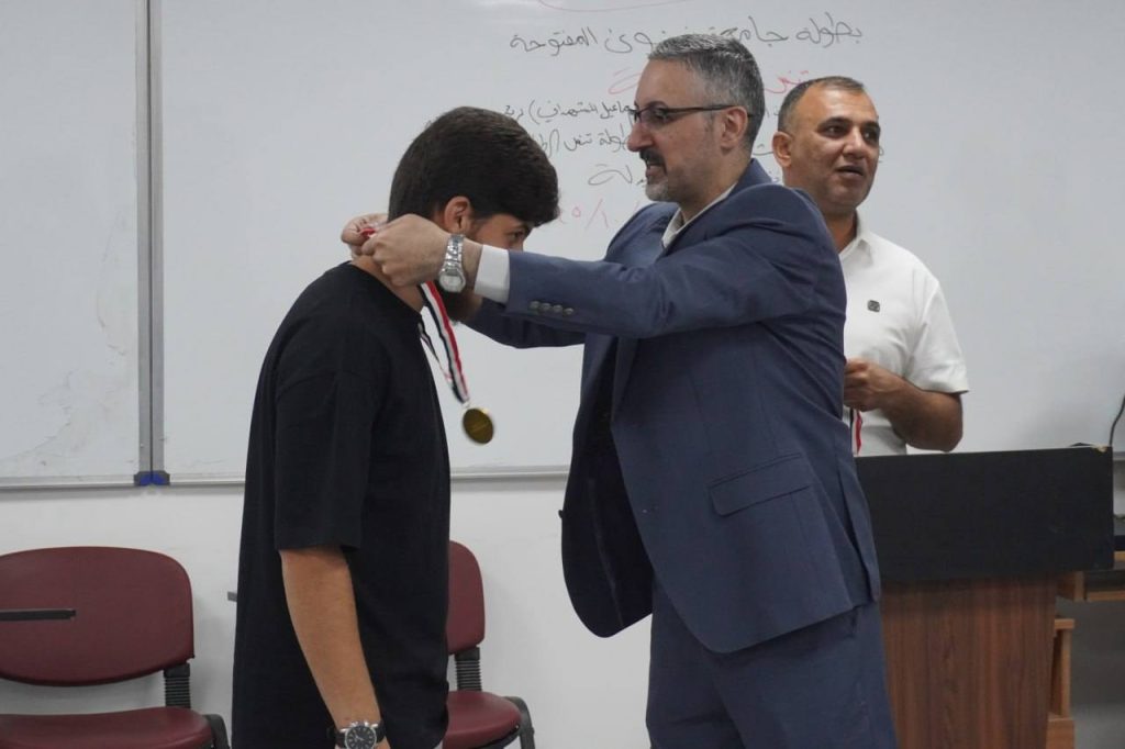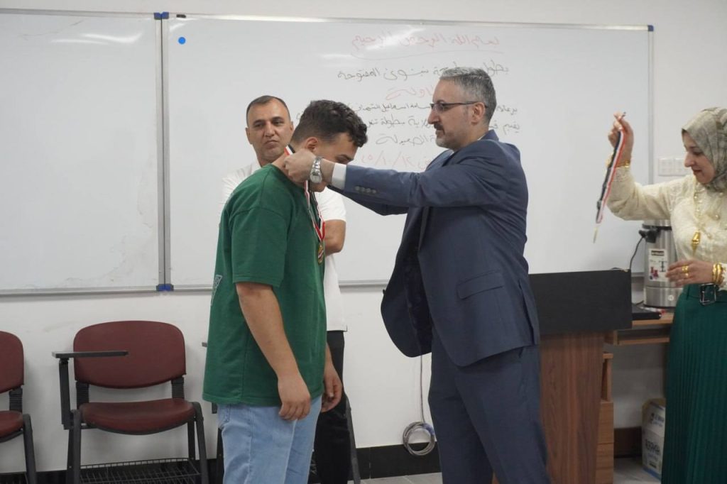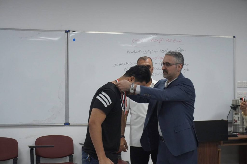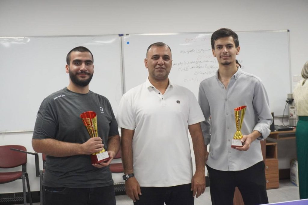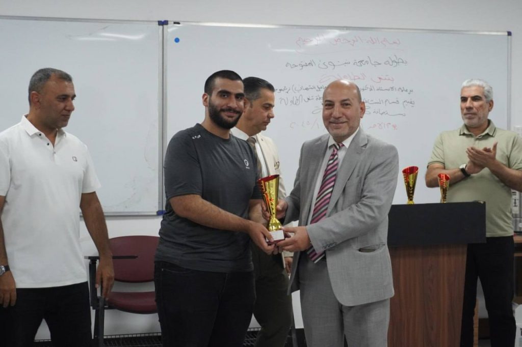 At the conclusion of the event, trophies and awards were presented to the winners in the presence of the Dean of the College of Pharmacy and the Associate Dean for Administrative Affairs, Dr. Omar Thanon, who extended their congratulations to the winners and wished continued success to all students participating in future tournaments.