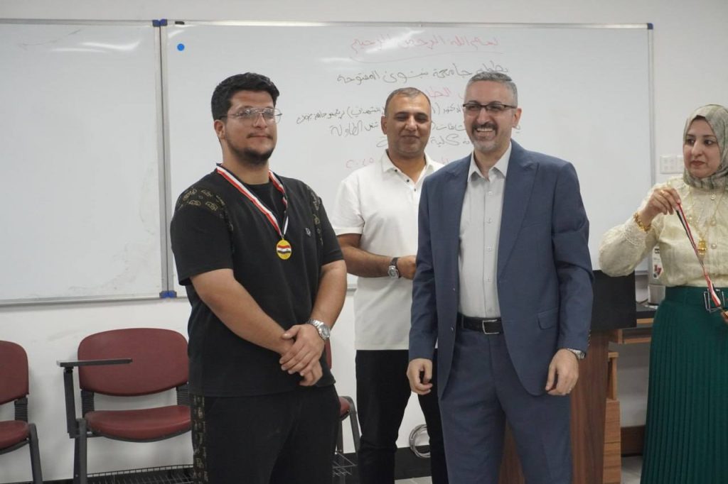 The Department of Student Activities at the University Presidency expressed its appreciation and gratitude to the College of Pharmacy for its excellent organization and warm hospitality, as well as to the judging and technical committees for their valuable contributions to the success of the championship and for presenting it in a manner befitting the academic stature of the University of Nineveh.