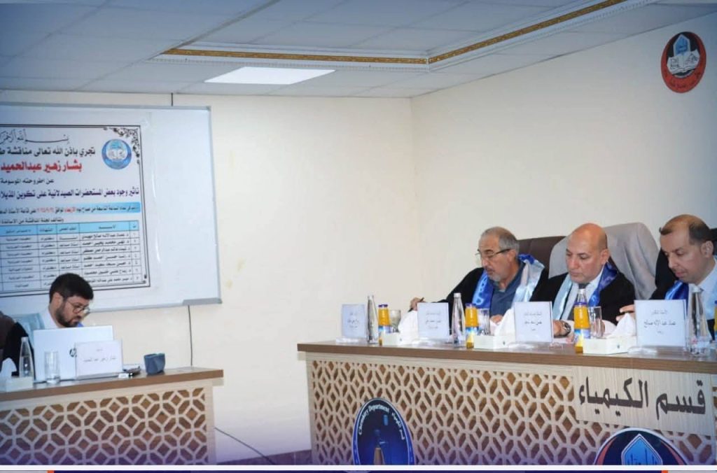 The Assistant Dean for Scientific Affairs, Asst. Prof. Dr. Hasan Al-Diwaji, also took part as a member of the examination committee. The defense was attended by the Head of the Department, a number of faculty members, and postgraduate students.